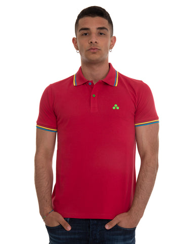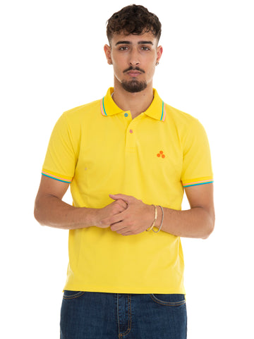 Peuterey NEWSELANDINASTR short sleeve polo shirt, fluo profiles, logo on the chest, textured fabric, slim...