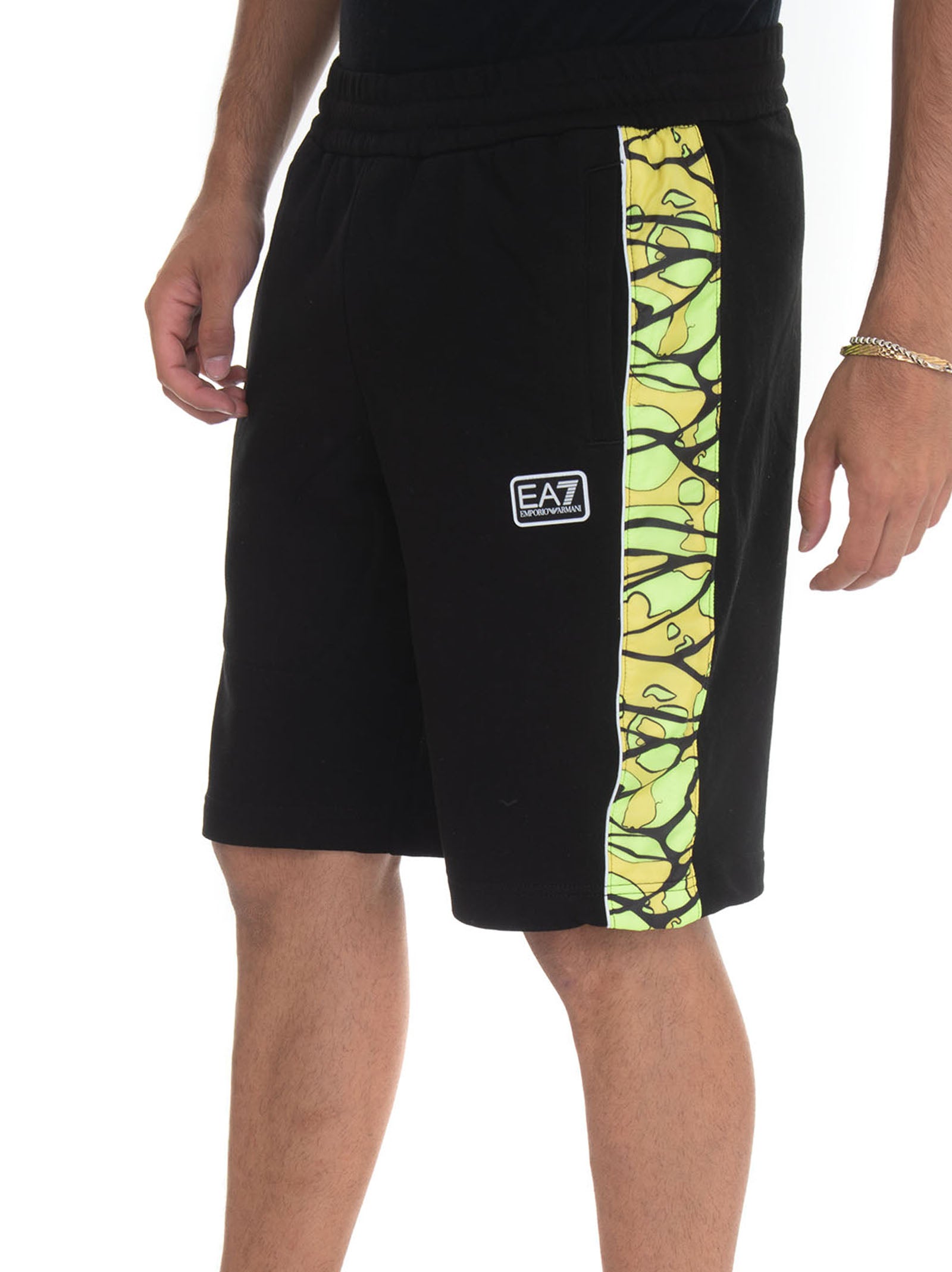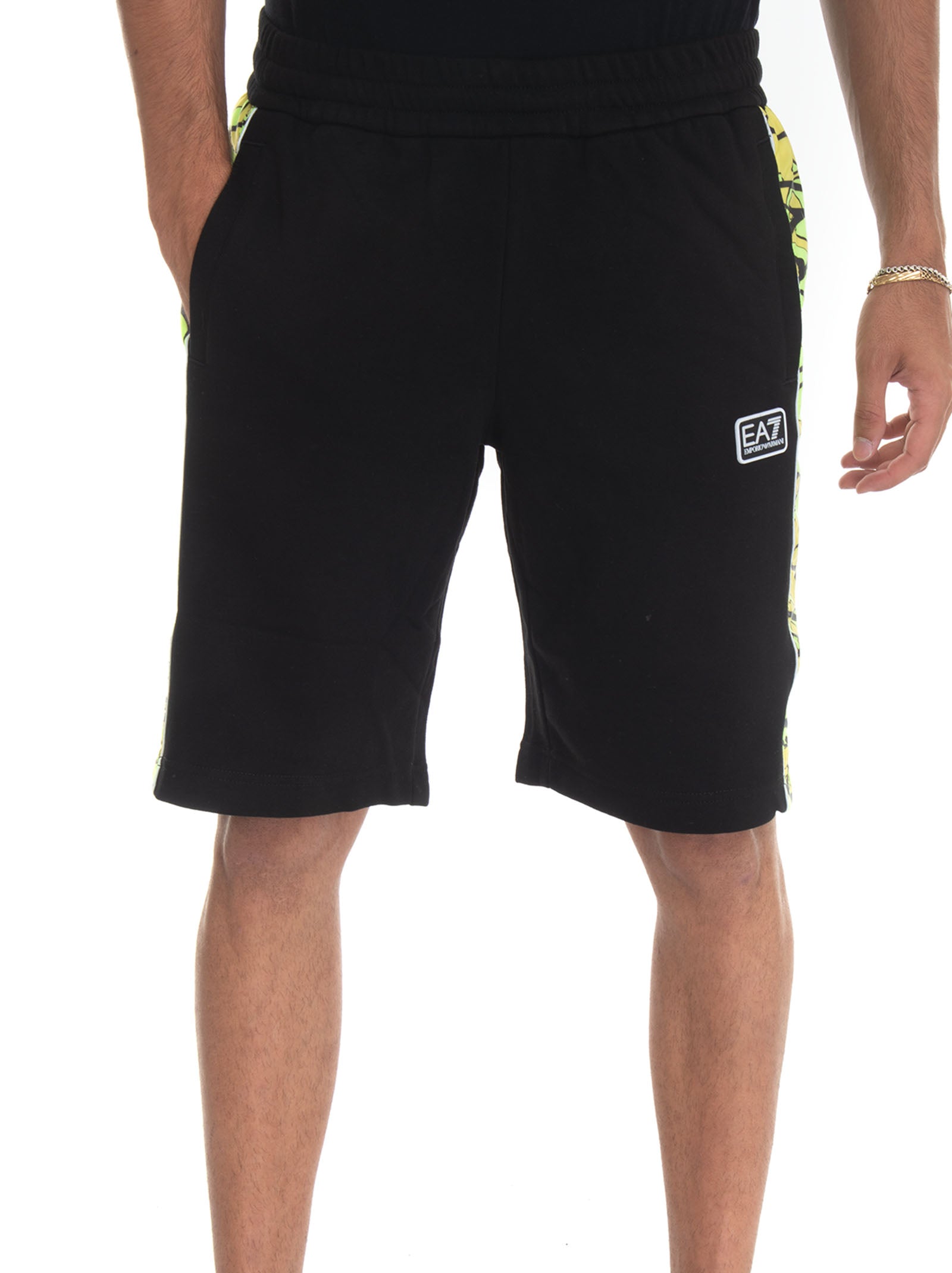 Fleece cotton bermuda, logoed side band, front logo, two welt pockets, spring at the waist, regular fit, composition: 100% cotton, line: EA7.