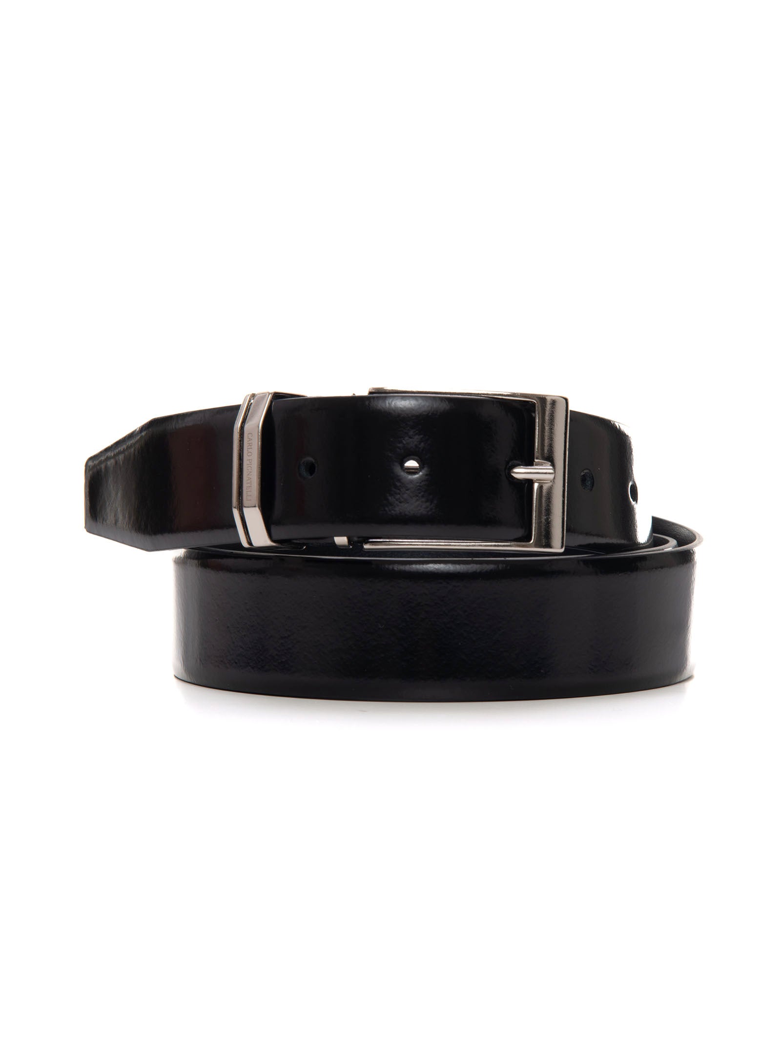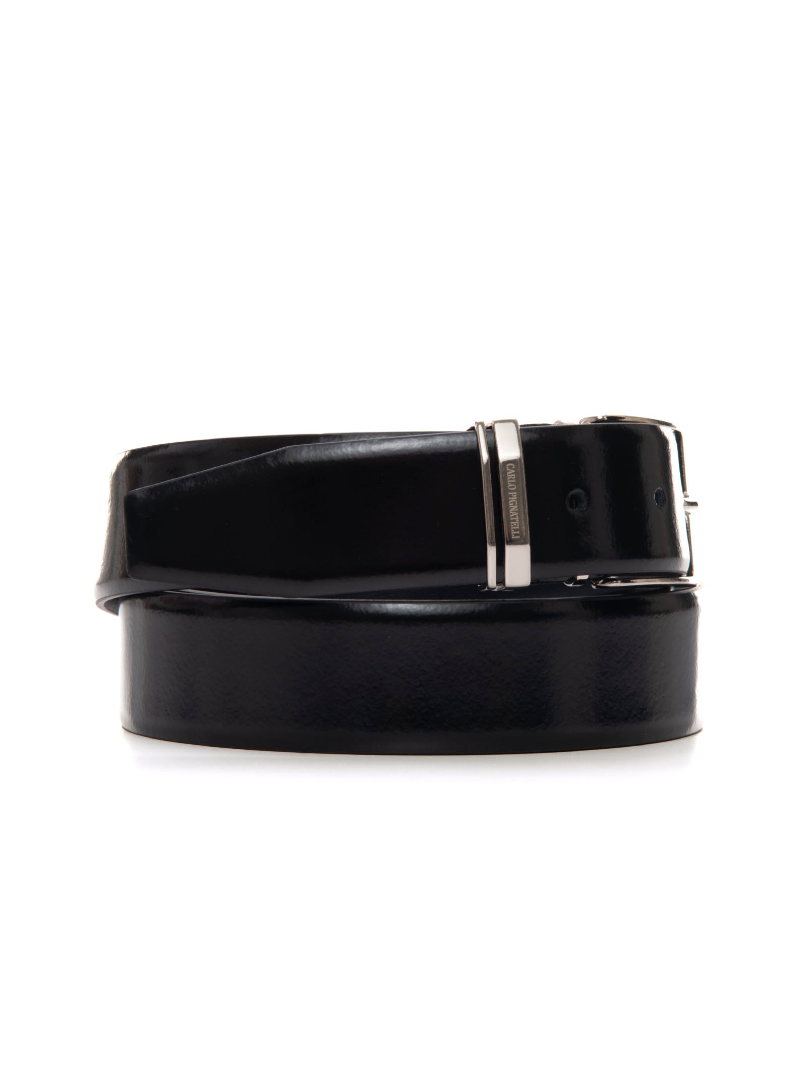 Classic belt, smooth leather, silver buckle, logoed buckle, solid color, composition: 100% leather, line: CARLO PIGNATELLI BLACK LABEL.