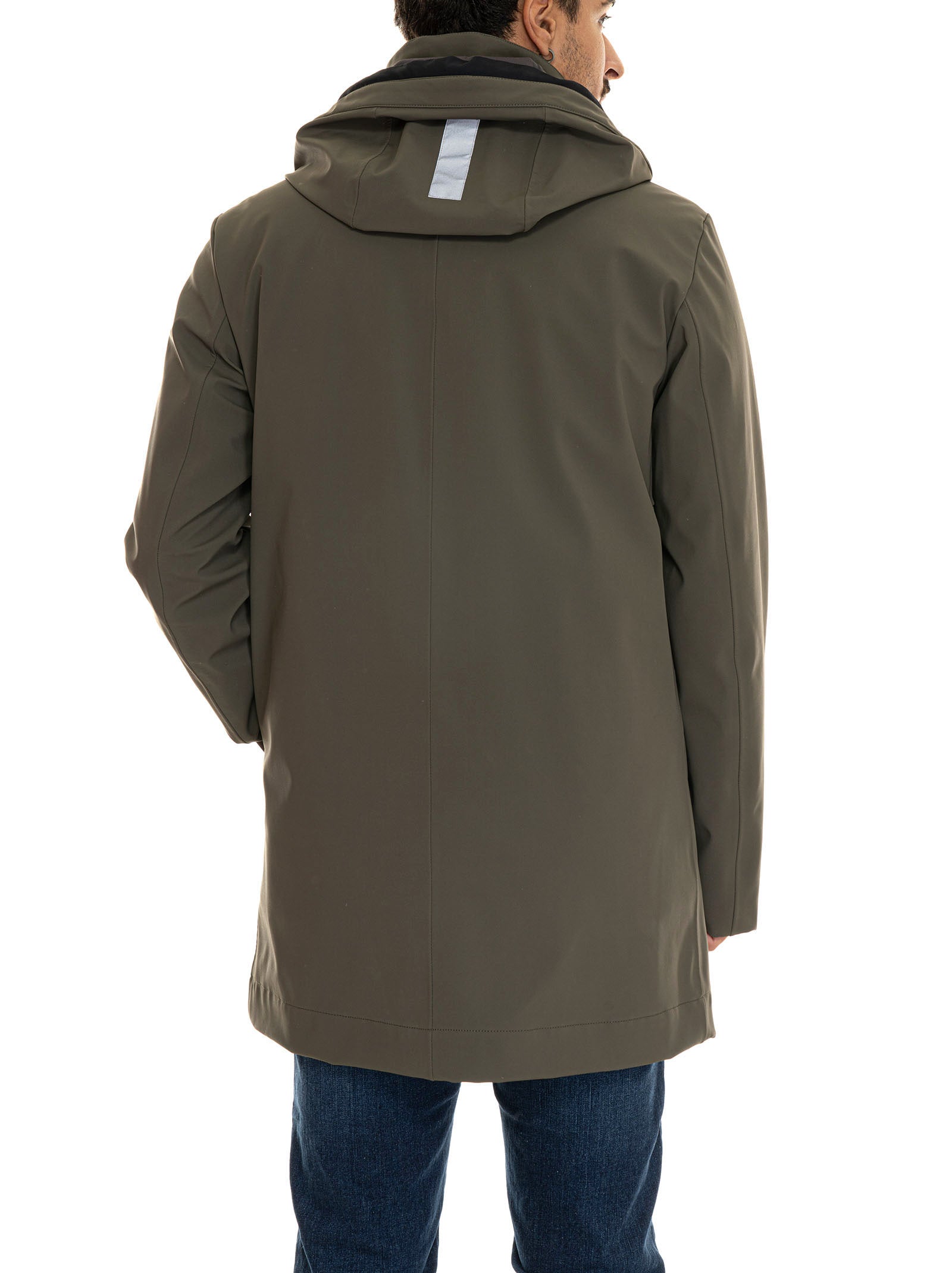 Peuterey GROFKP jacket, detachable hood, button and concealed zip fastening, logo on the arm, side pockets, internal pocket, primaloft fabric, composition: 86% polyamide, 14% elastane, interior: 100% polyester, line: PEUTEREY.