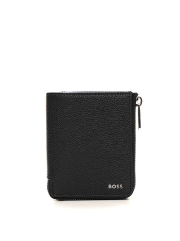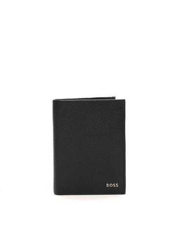 BOSS JINKO-BIFOLD vertical wallet, textured material, metal logo, card slots, note compartment, composition: 62% recycled...
