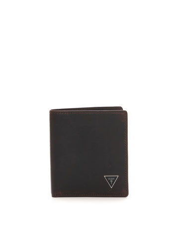Vertical wallet, hammered leather, card slots, banknote compartment, coin compartment, side logo, composition: 100% leather,...