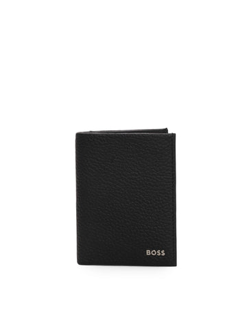BOSS NEW-CROSSTOWN-BIFOLD vertical wallet, hammered leather, chrome-plated steel logo, card slots, note compartment, composition: 100%...