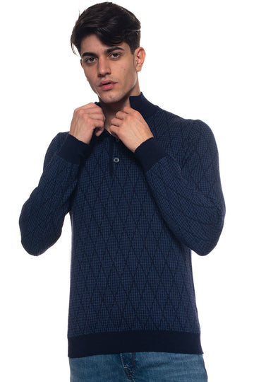 4-button pullover, rhombus pattern, collar, cuffs and bottom in contrasting colour, made in Italy, dressed...