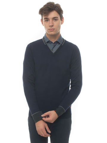 Peuterey Dencom01 V-neck pullover, contrasting color details, small front logo, dressed fit, composition: 50% wool,...