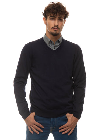 V-neck pullover, solid color, slim fit, composition: 100% merino wool, line: HINDUSTRIE.