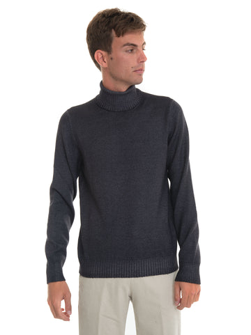 High neck pullover, stone washed, solid color, slim fit, composition: 100% wool, line: GRAN SASSO.