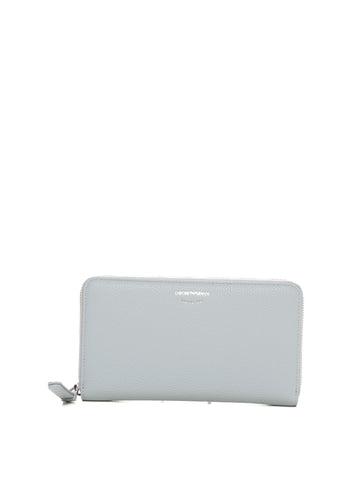 Wallet, card slots, zip coin compartment, metal logo, textured finish, composition: 100% leather, line: EMPORIO...