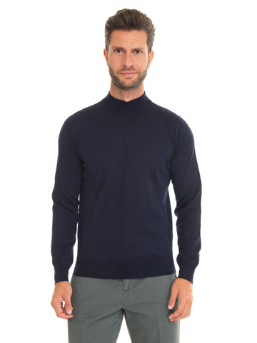 Mock-neck pullover, solid colour, made in Italy, slim fit, composition: 100% wool, line: HINDUSTRIE.