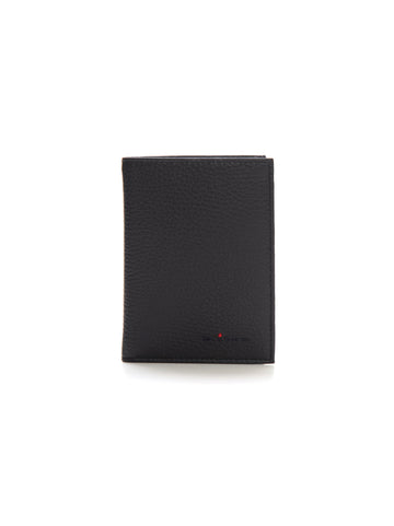 Kiton Upen vertical wallet, textured leather, banknote compartment, card holder compartments, matching stitched logo, solid...