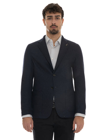 Deconstructed unlined jacket, 2 button closure, patch pockets, golden logo button, back vent, jacket length...