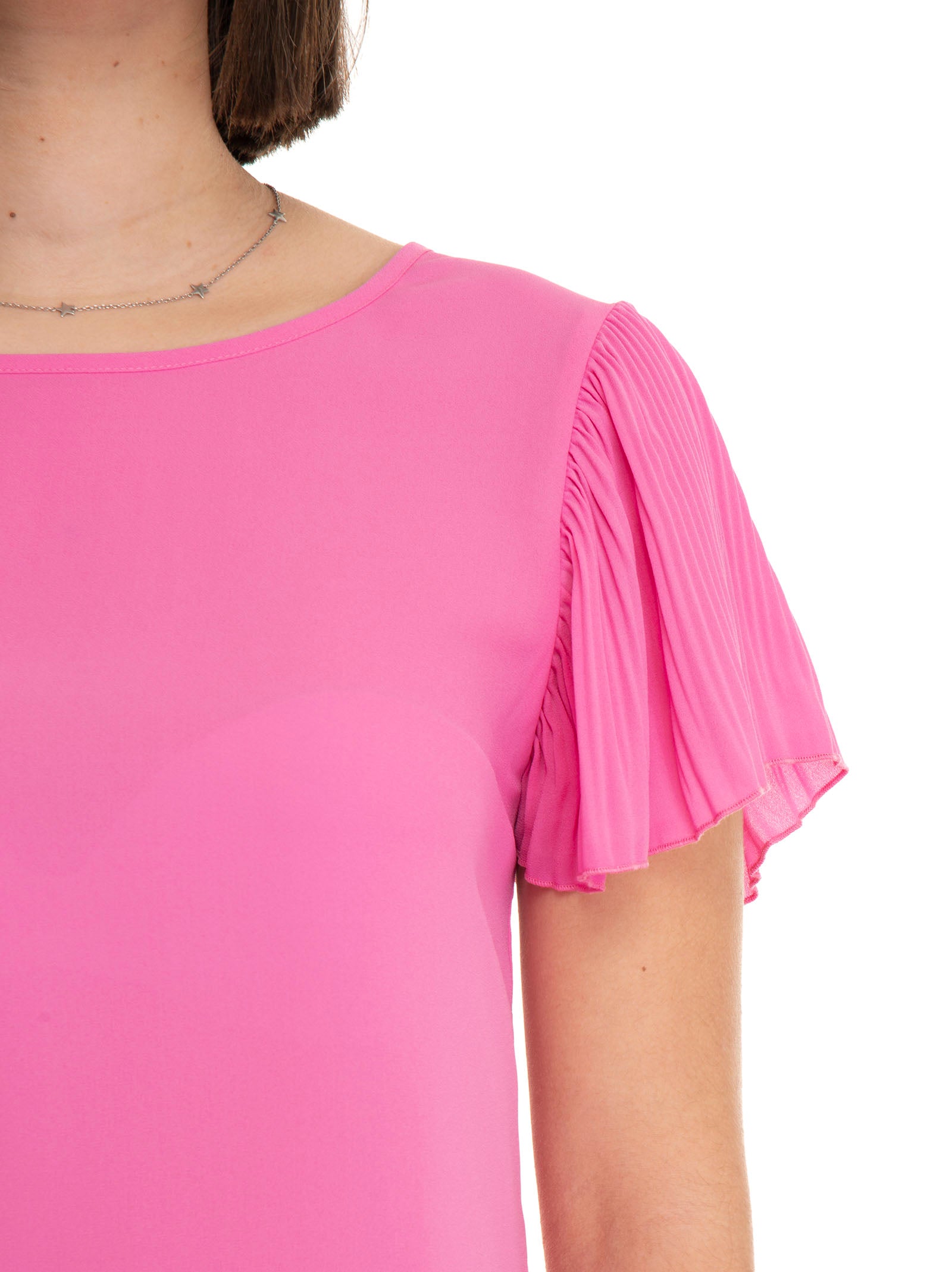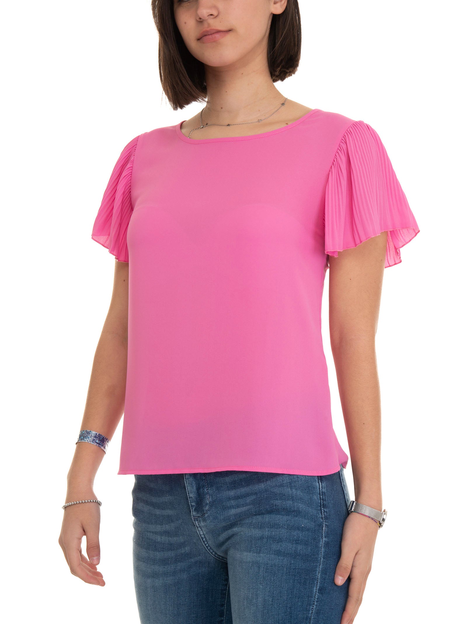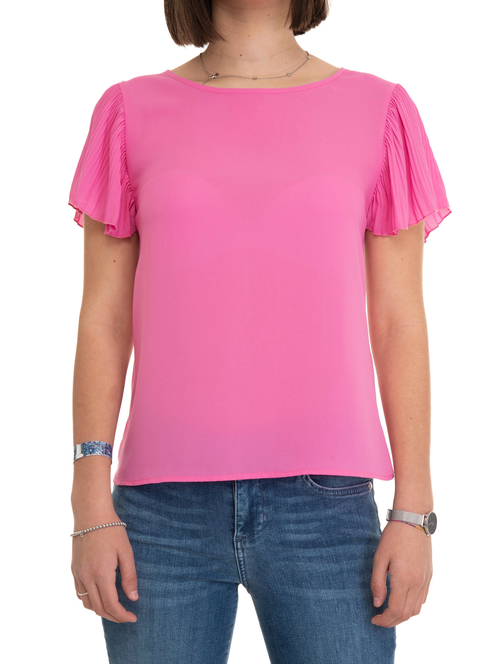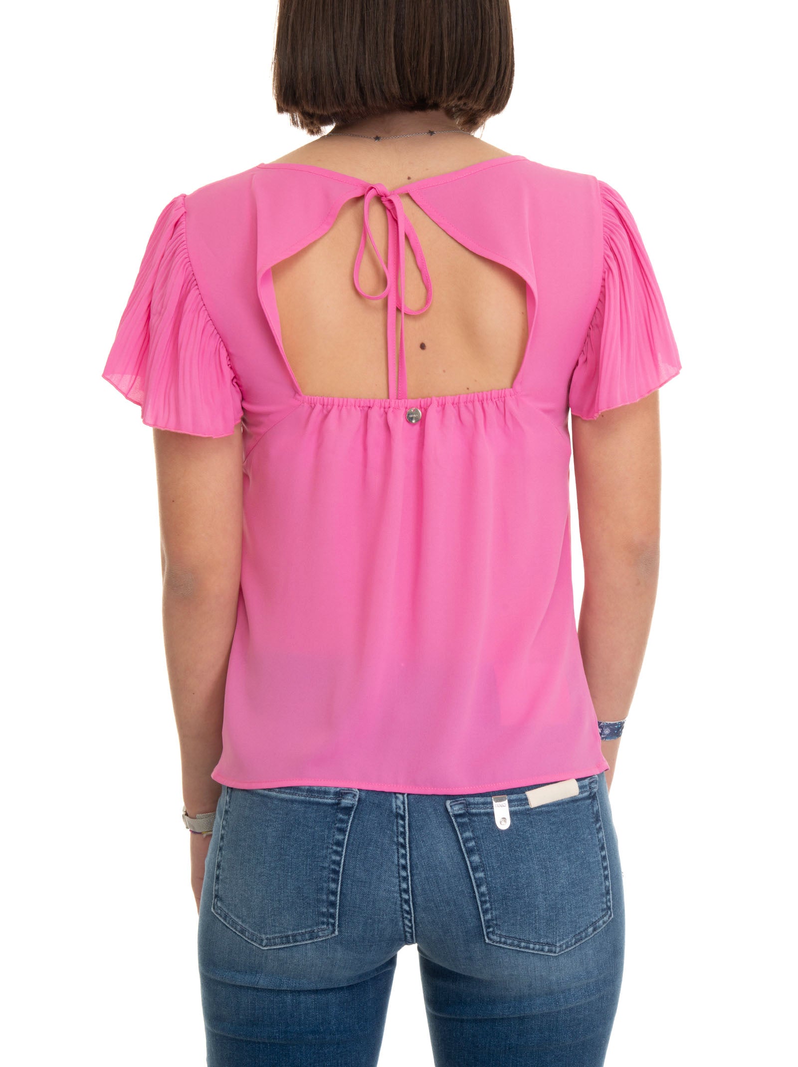 Short sleeve blouse, round neck, back neckline, logo tab, soft, regular fit, composition: 100% polyester, line: LIU JO.
