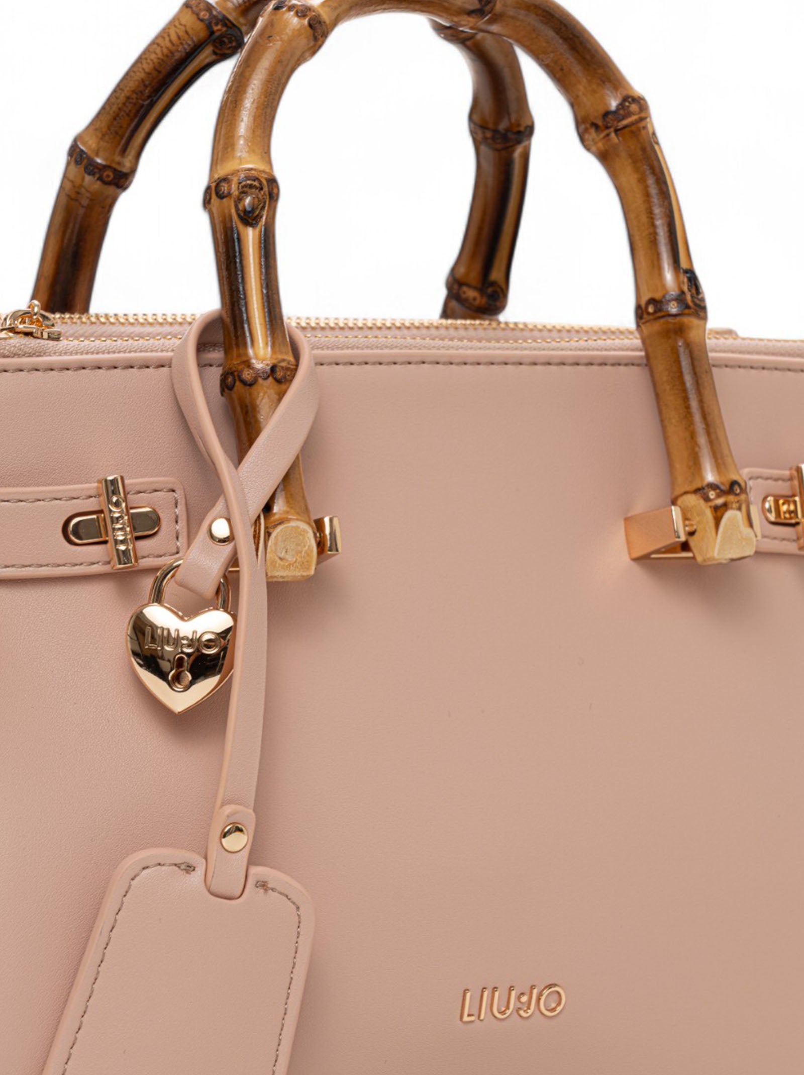 Small bag, removable and adjustable shoulder strap, removable charm, three internal pockets: two with zip and one open, small front logo, rigid handles, composition: 100% polyurethane, line: LIU JO.