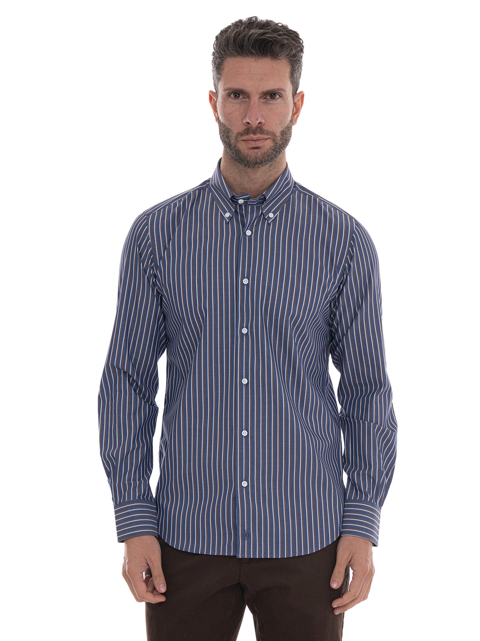 Camicia Blu-marrone Carrel Uomo