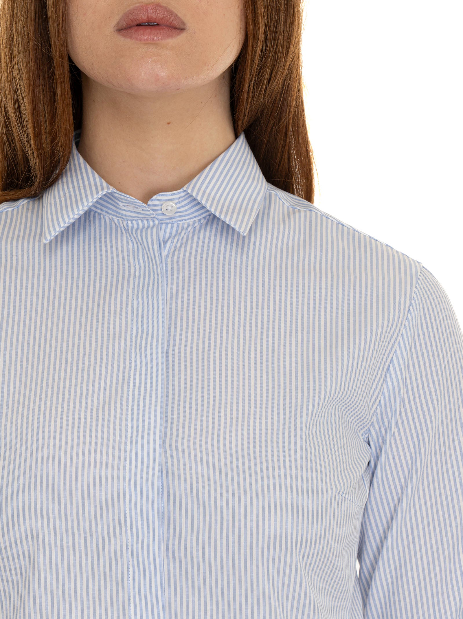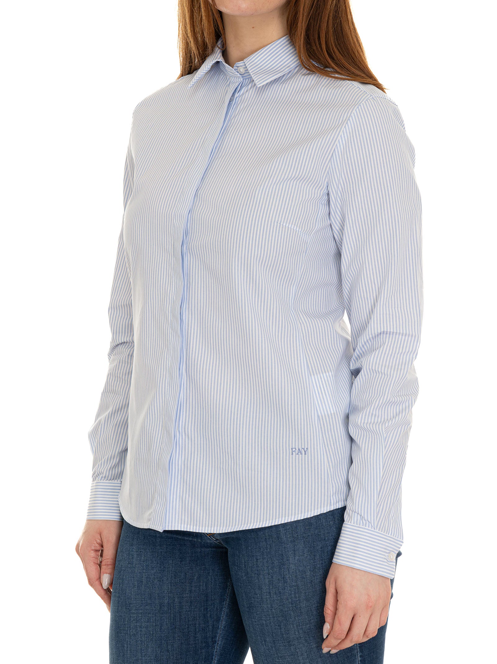 Classic women's shirt, striped pattern, long sleeves, concealed button fastening, logo sewn on the bottom, composition: 100% cotton, line: FAY.