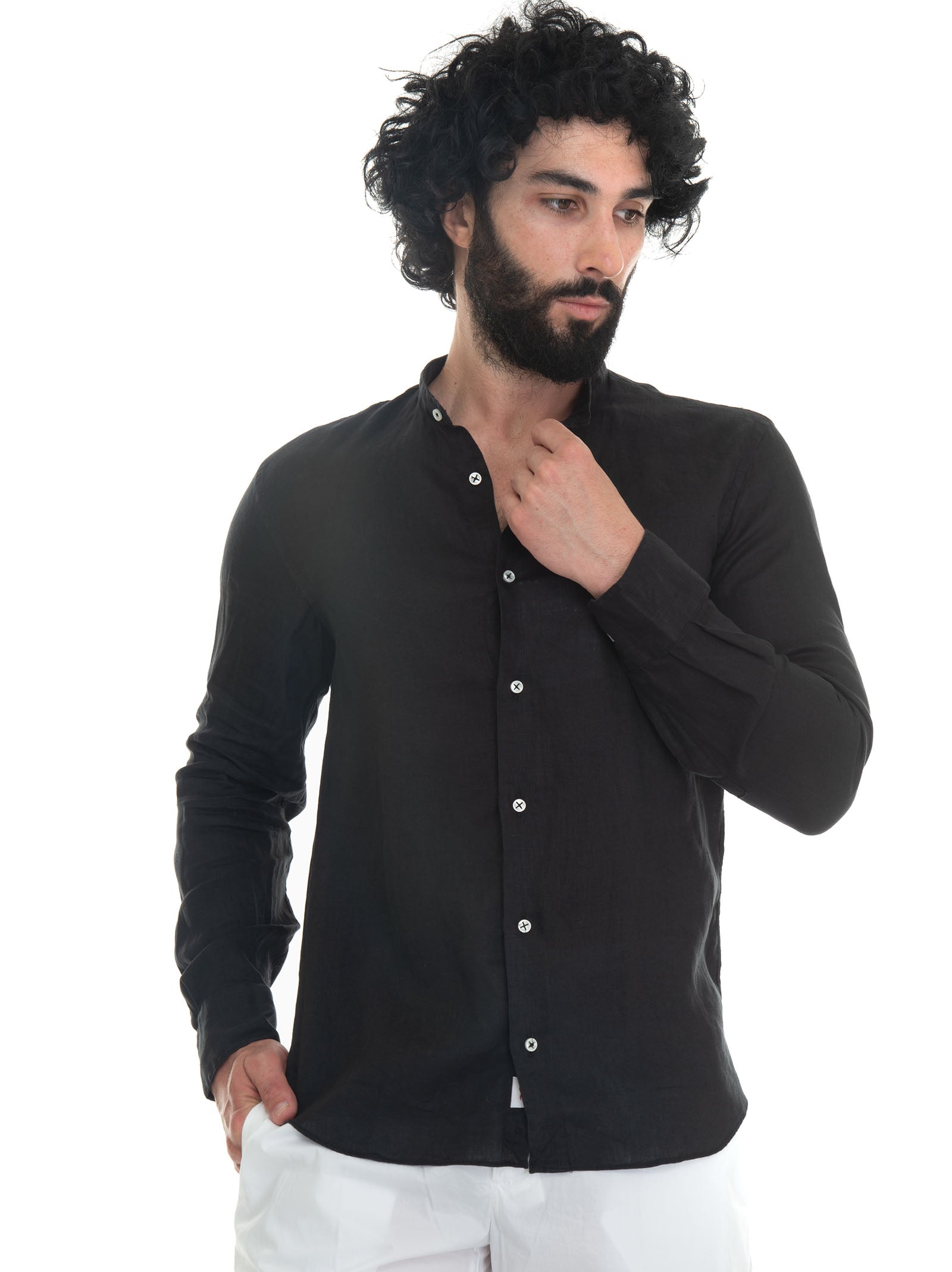 Guru linen shirt Black Vincenzo De Lauziers Man