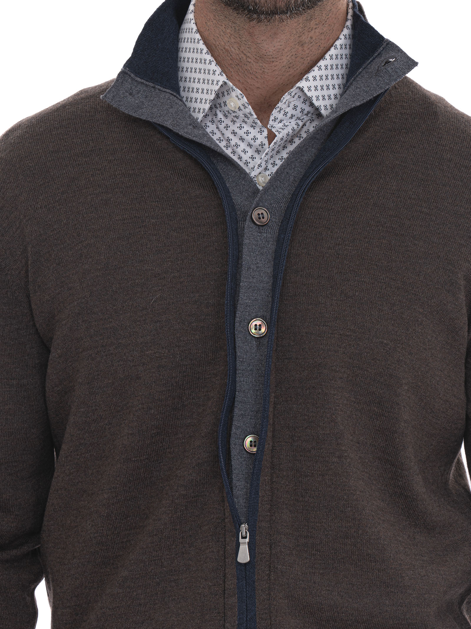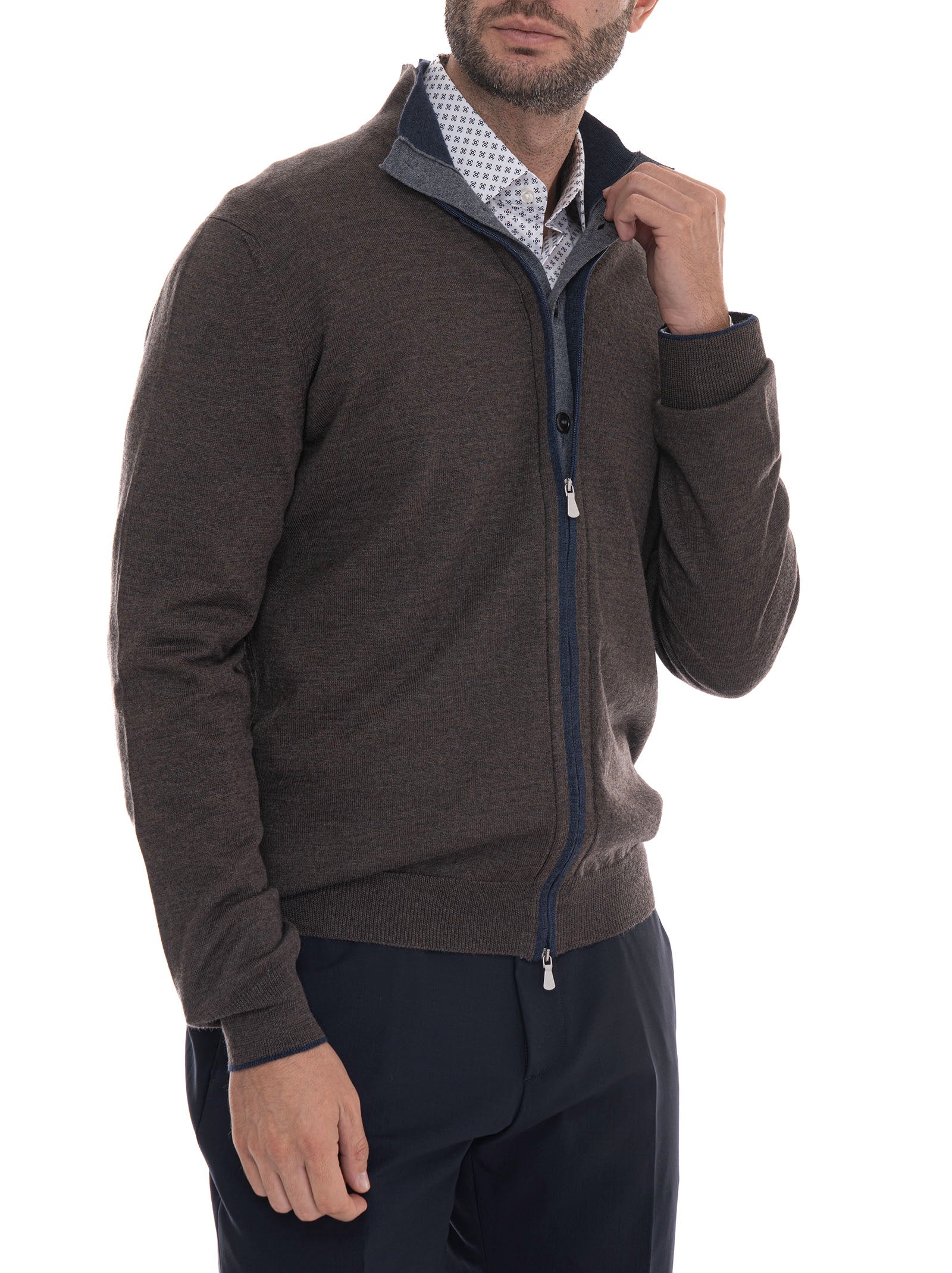 Cardigan in lana Marrone-blu Gran Sasso Uomo