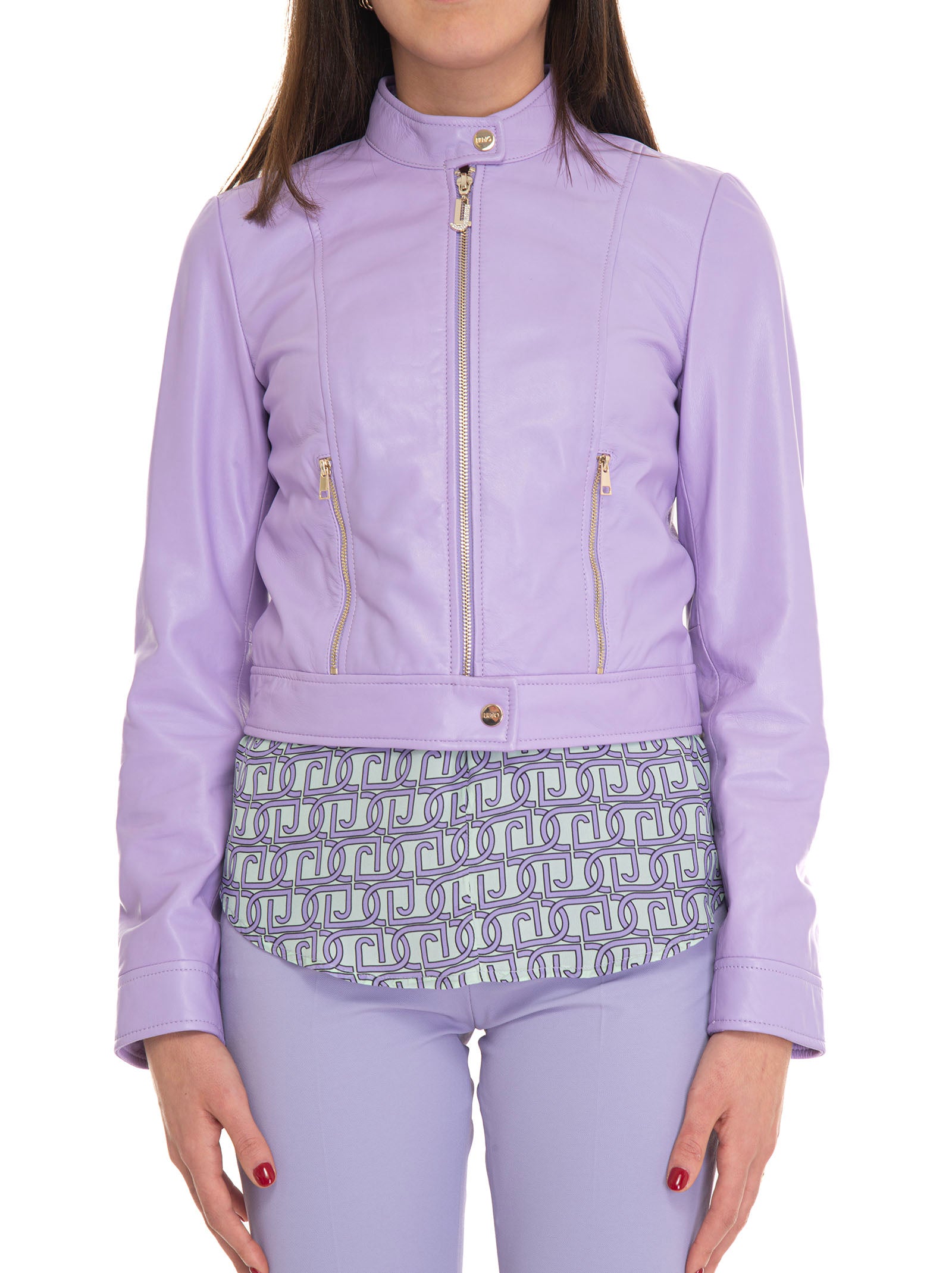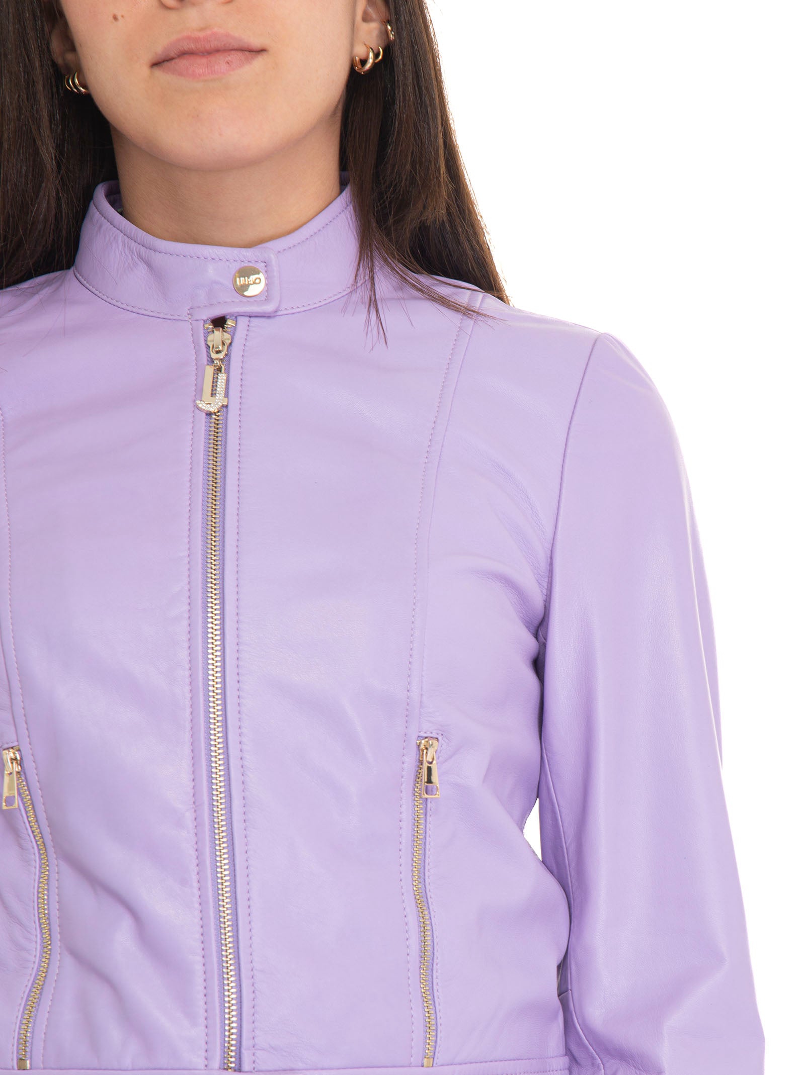 Biker jacket, zip closure, mandarin collar with button closure, side pockets, screwed, composition: 100% leather, line: LIU JO.