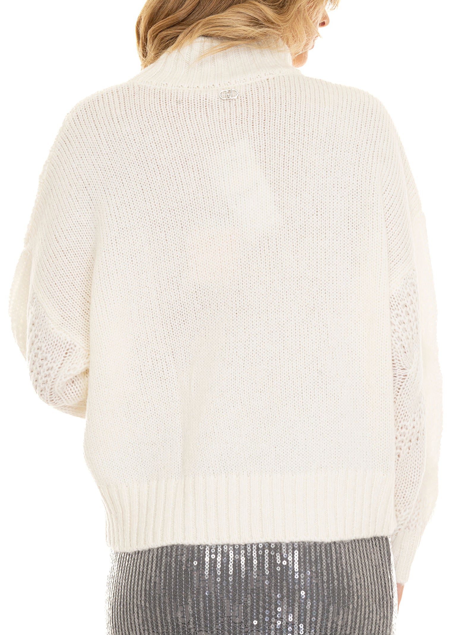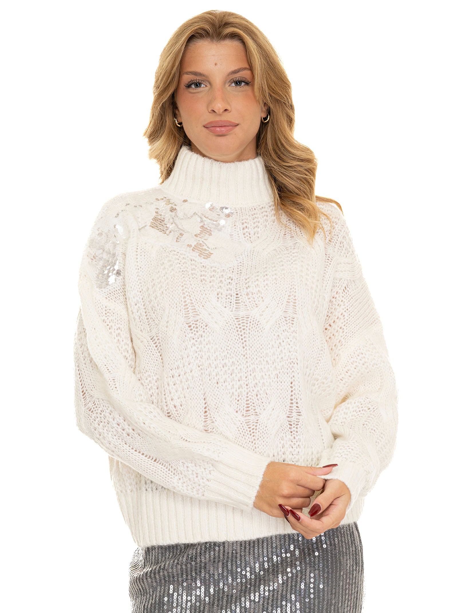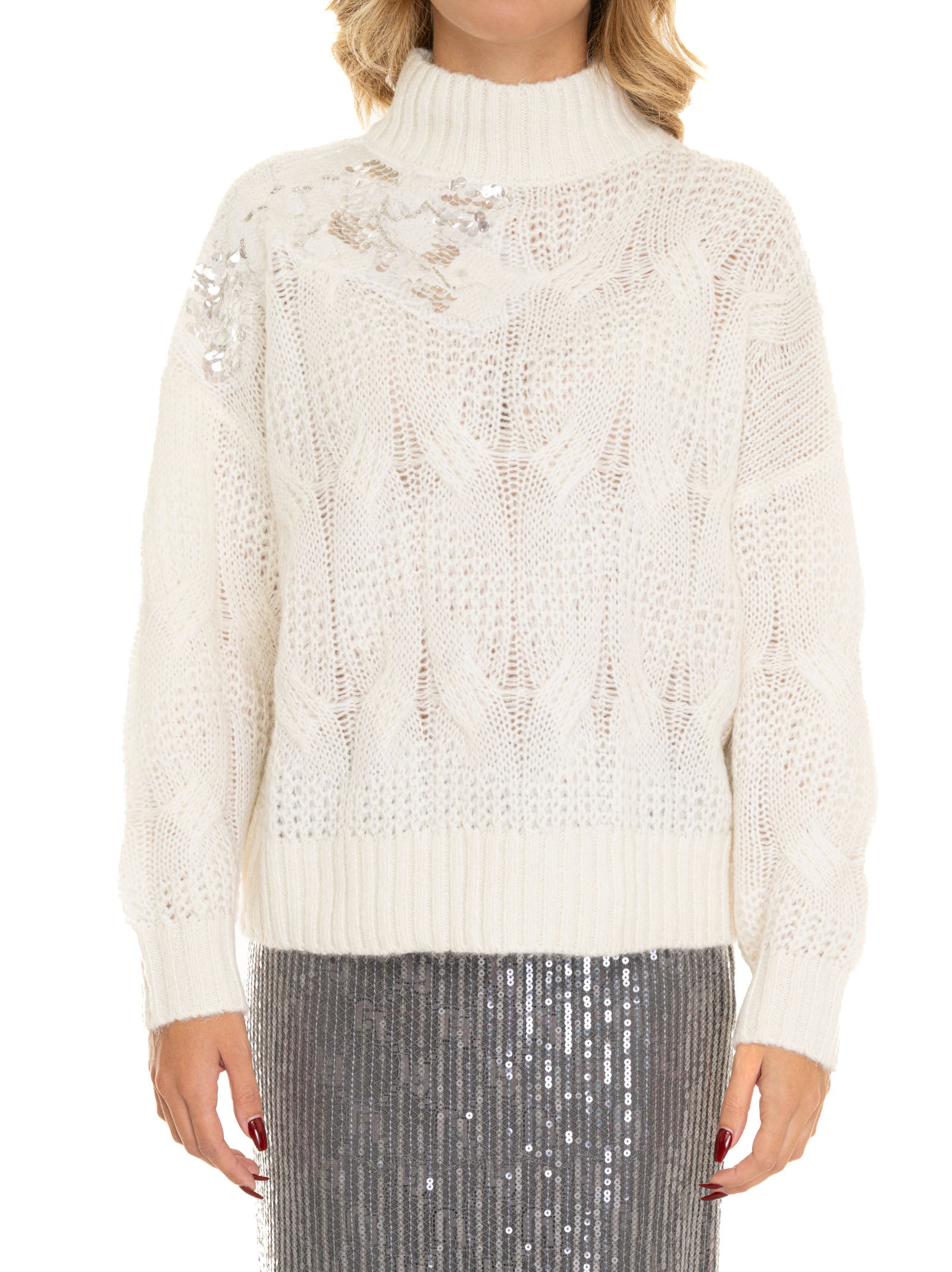 Sweater, high neck, sequin applications, oversized model, tongue with logo, ribbed knit, composition: 45% acrylic, 30% polyamide, 15% wool, 10% Alpaca, line: LIU JO.
