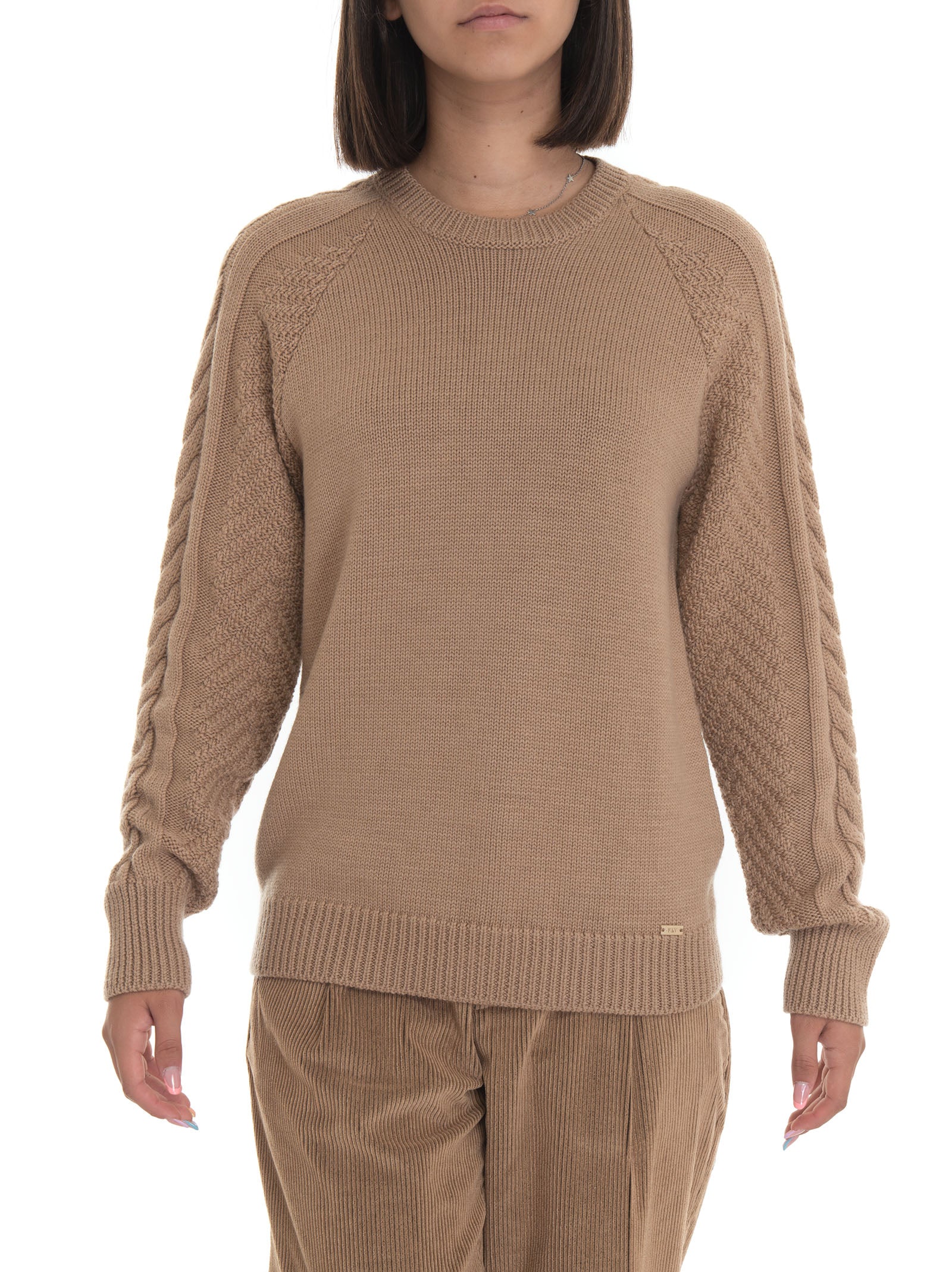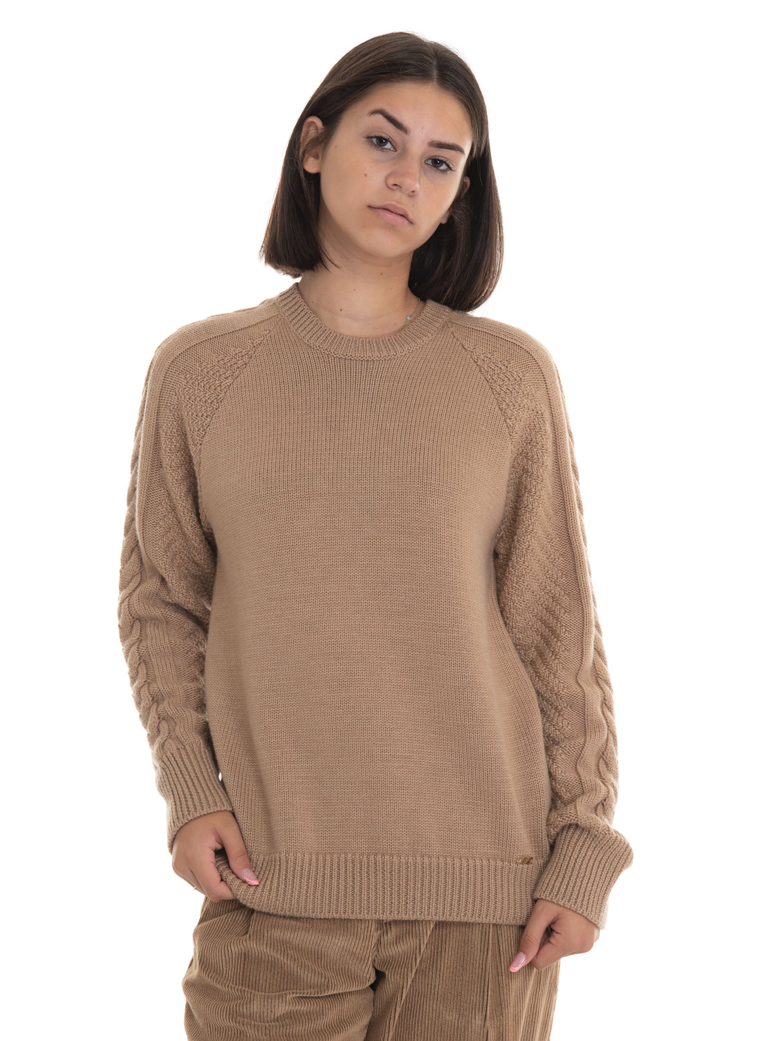 Crew neck sweater, raglan sleeves, cable knit, ribbed bottom and cuffs, comfort fit, composition: 100% virgin wool, line: FAY.