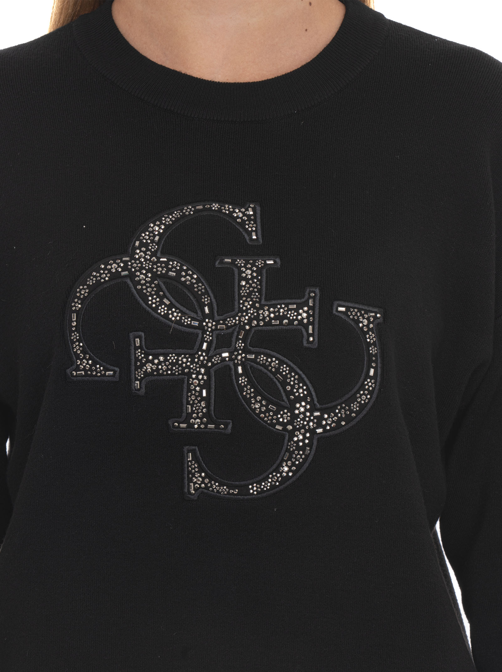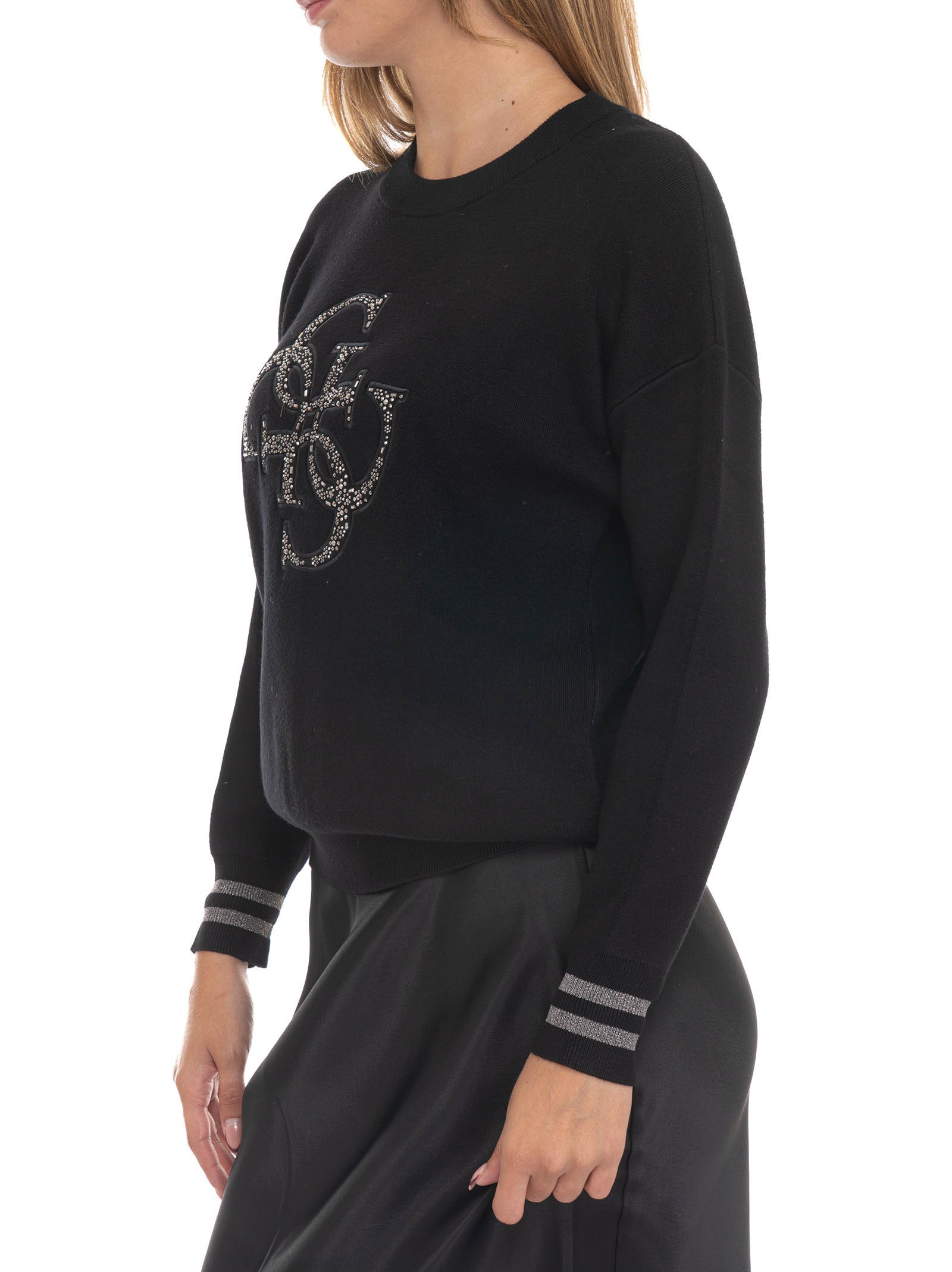 Sweater, crew neck, front logo, contrasting color details, composition: 77% viscose, 20% polyamide, 3% elastane, line: GUESS.