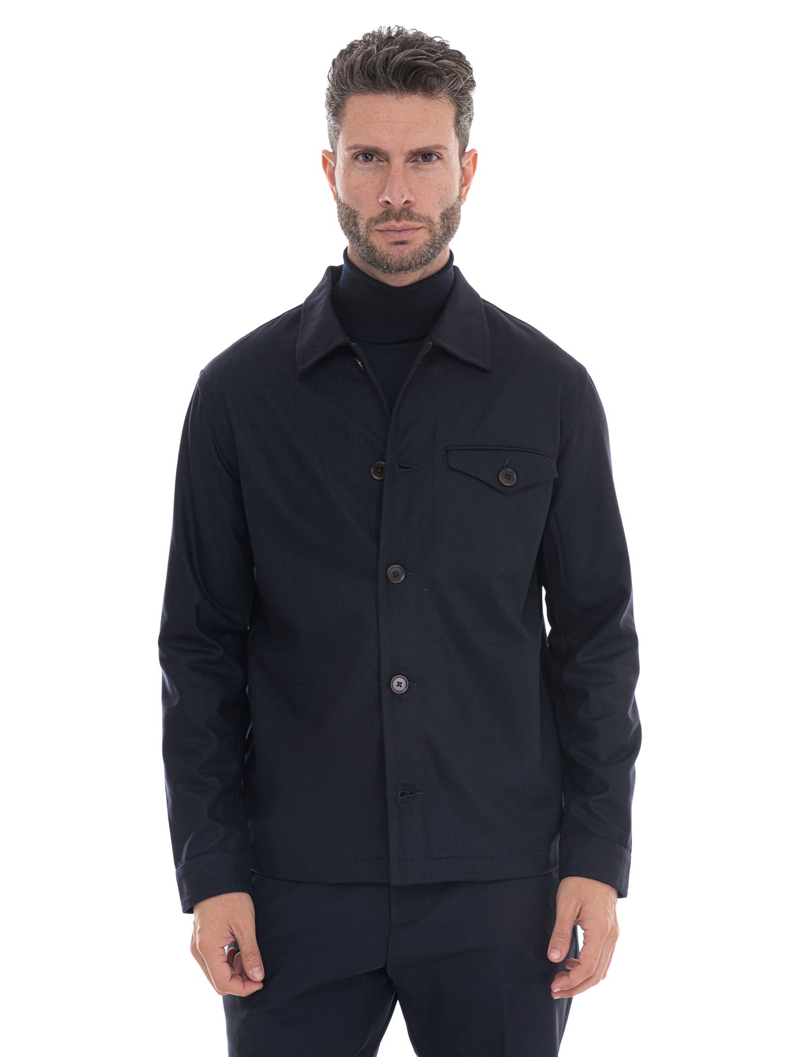 Overshirt, tessuto in flanella, tasca sul davanti, chiusura bottoni, tasche a filo, composizione: 70% lana, 25% poliammide, 5% cachemire, linea: HINDUSTRIE.