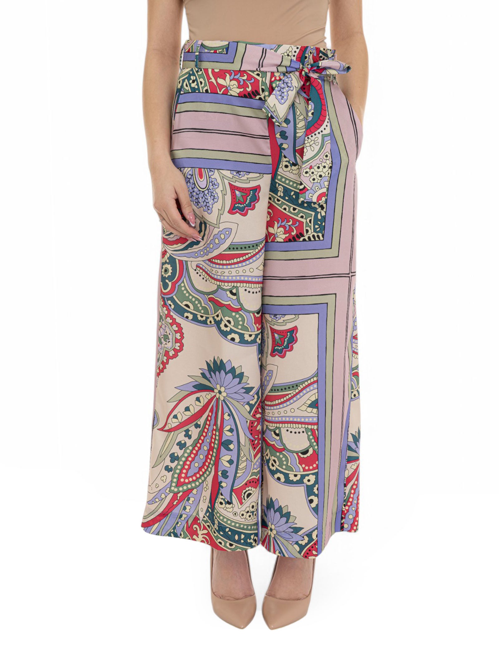Chino trousers, scarf print, belt at the waist, side zip fastening, high waist, wide leg, composition: 100% polyester, line: LIU JO.