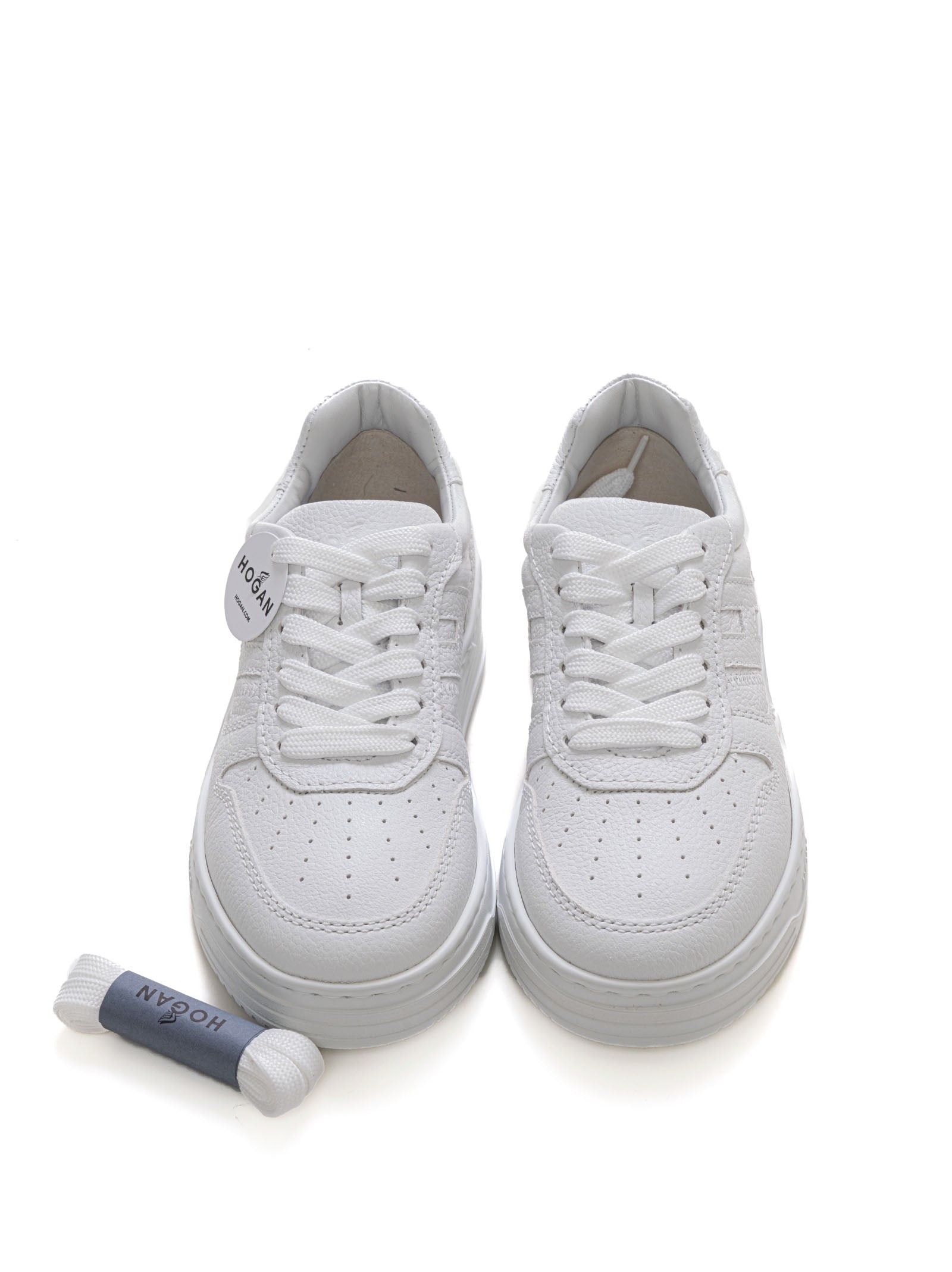Hogan H30 lace-up leather sneakers, breathable holes on the front, matching stitched logo, removable memory foam technology insole, non-slip rubber sole, spare laces, composition: 100% leather, interior: 100% rubber, line: HOGAN.