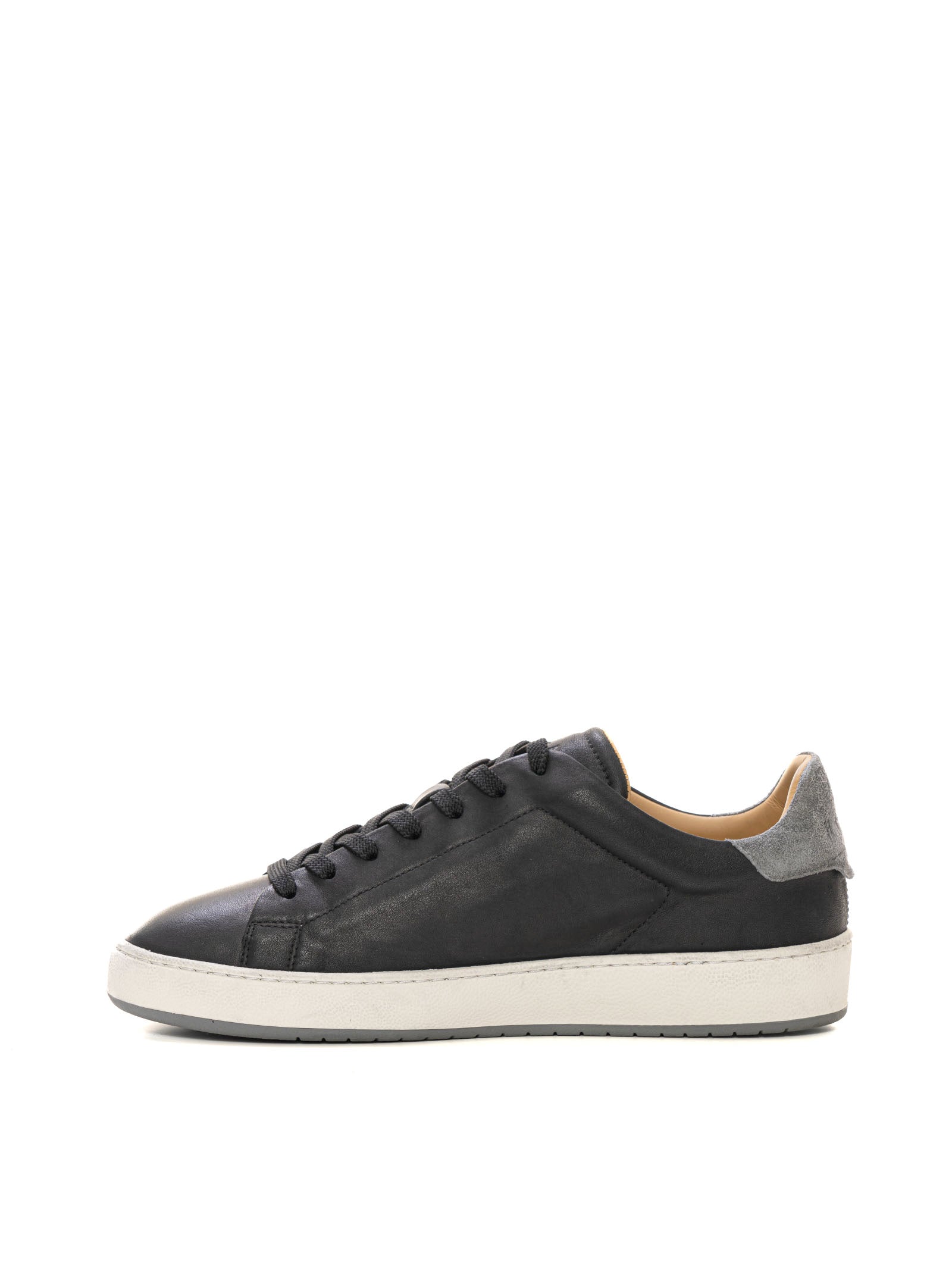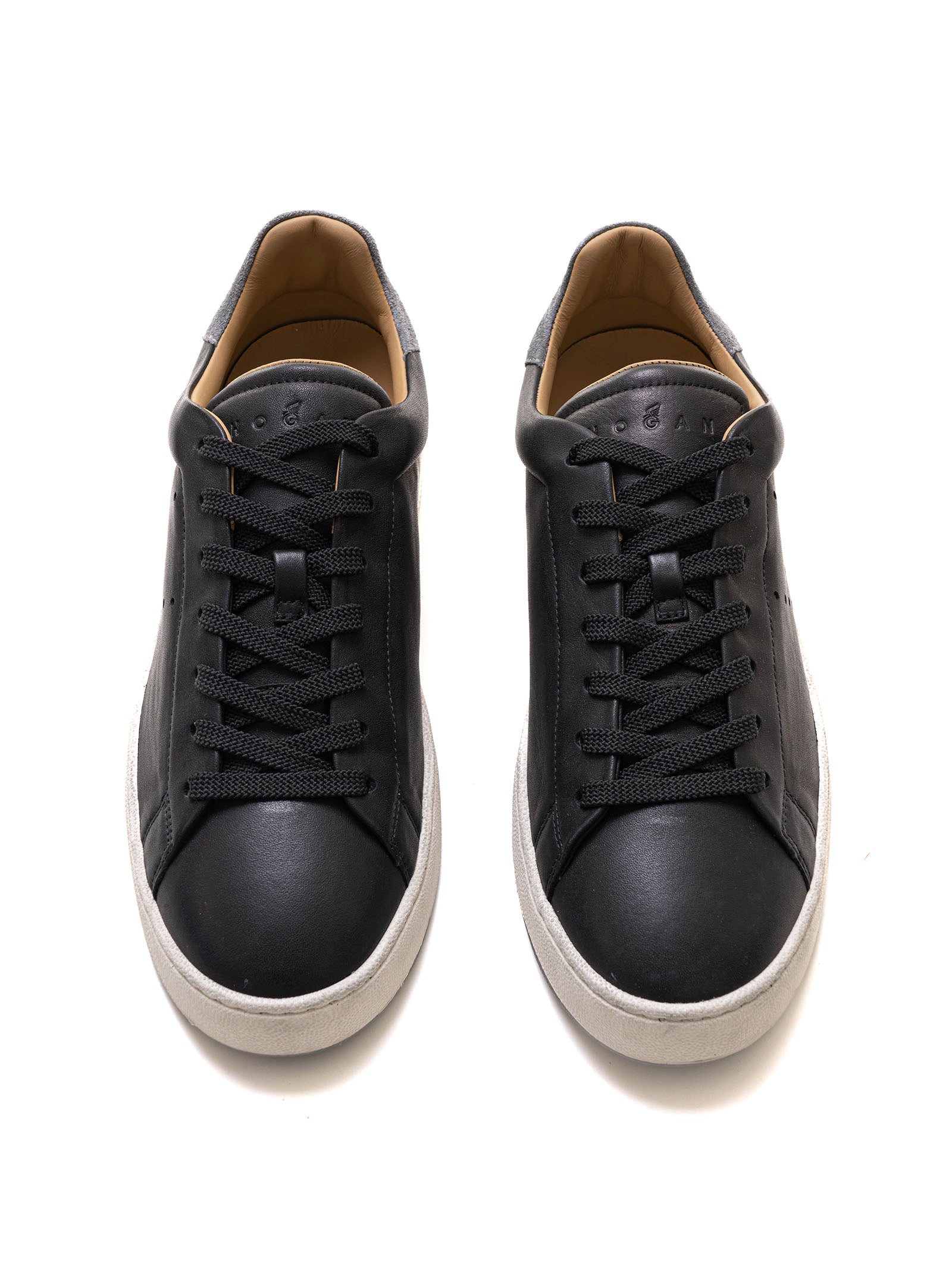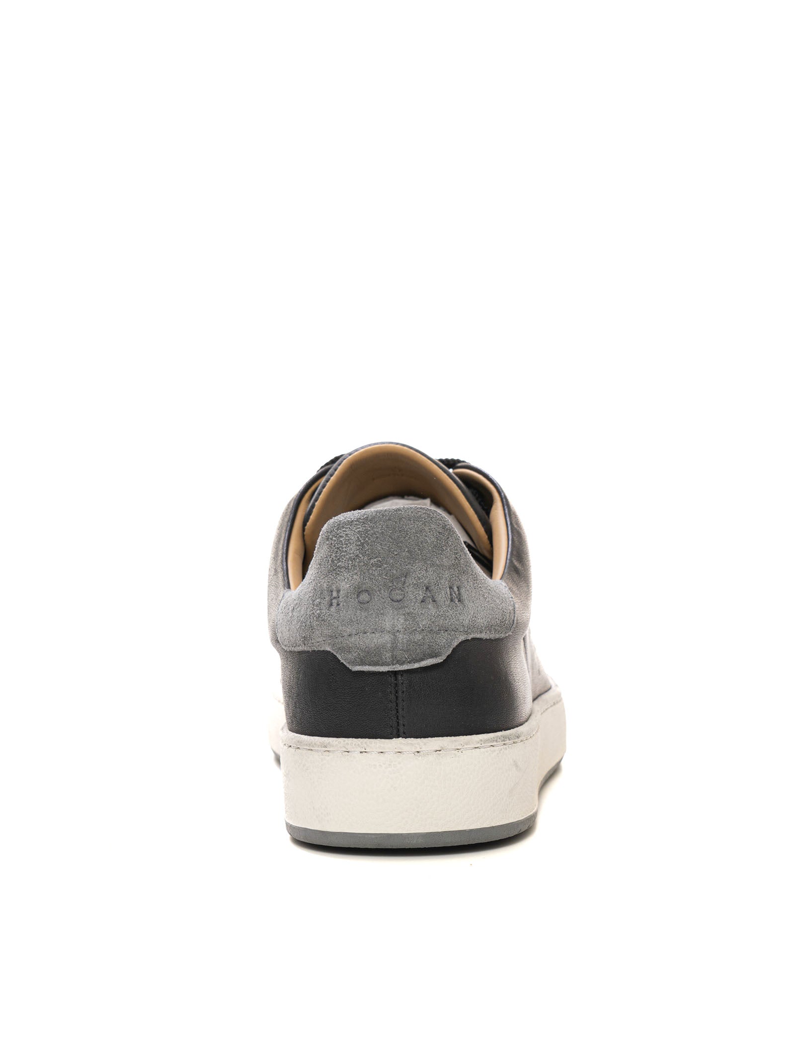 Hogan H672 leather sneakers, side logo, contrasting color suede heel, suede inserts, vintage effect, removable insole, perforated side h, composition: 100% leather, line: HOGAN.