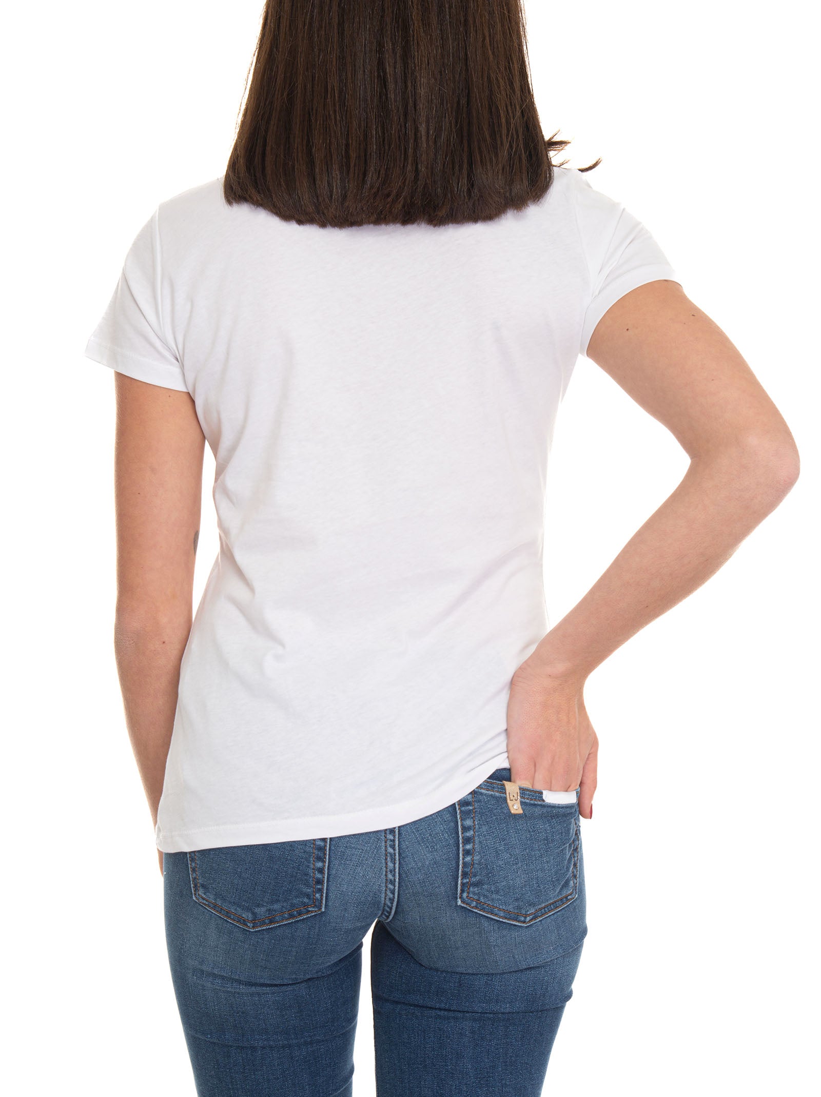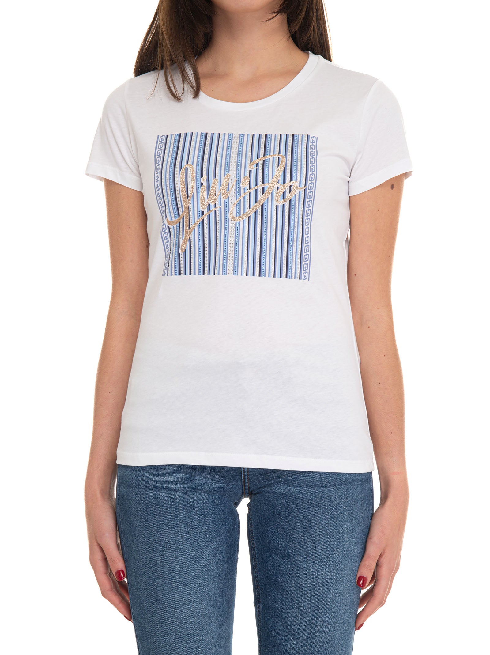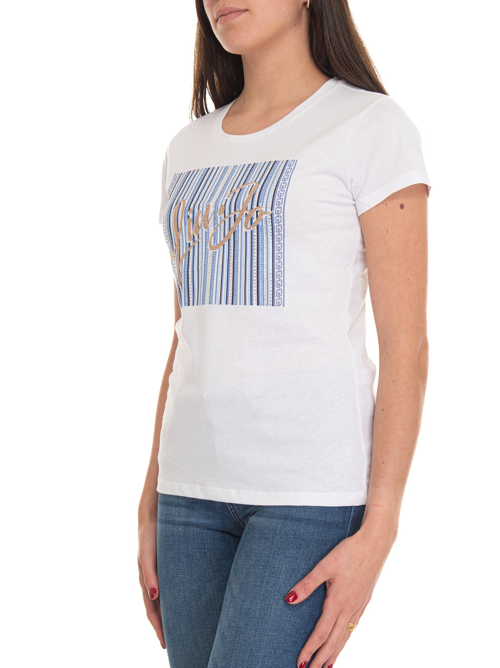 T-shirt, crew neck, short sleeve, front print, rhinestone applications, composition: 100% cotton, line: LIU JO.