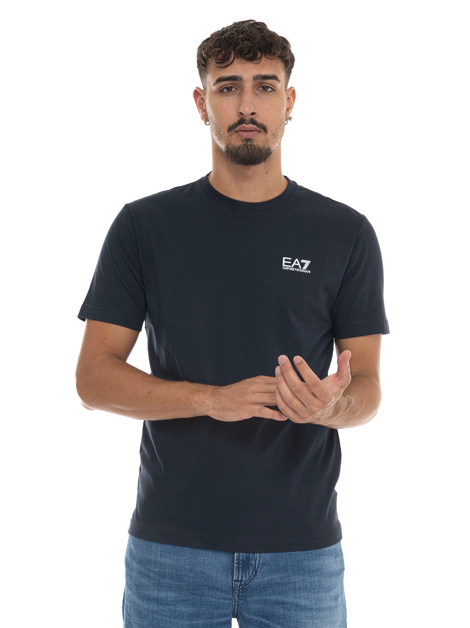 T-shirt, girocollo, manica corta, logo laterale, composizione: 100% cotone, linea: EA7.
