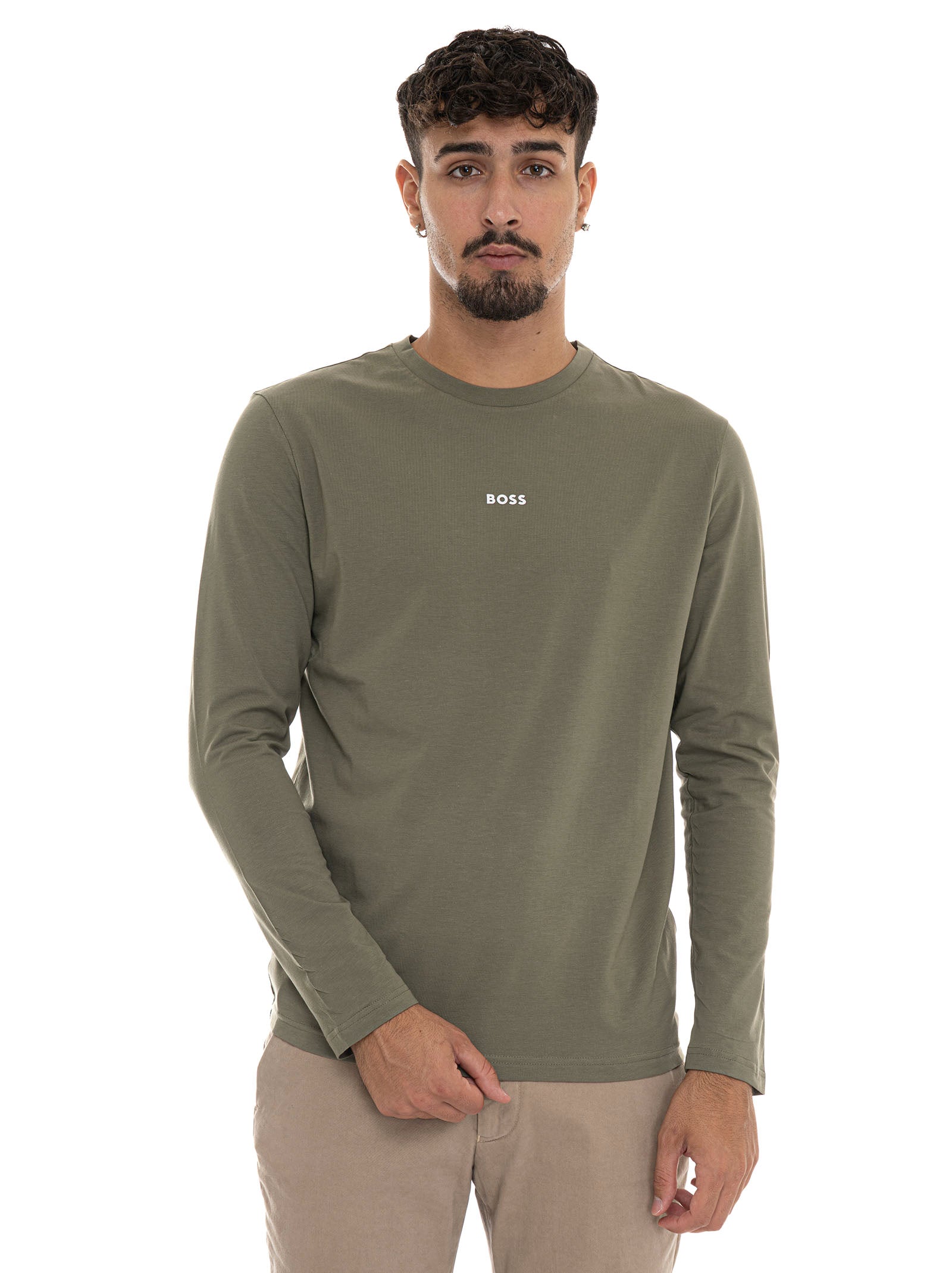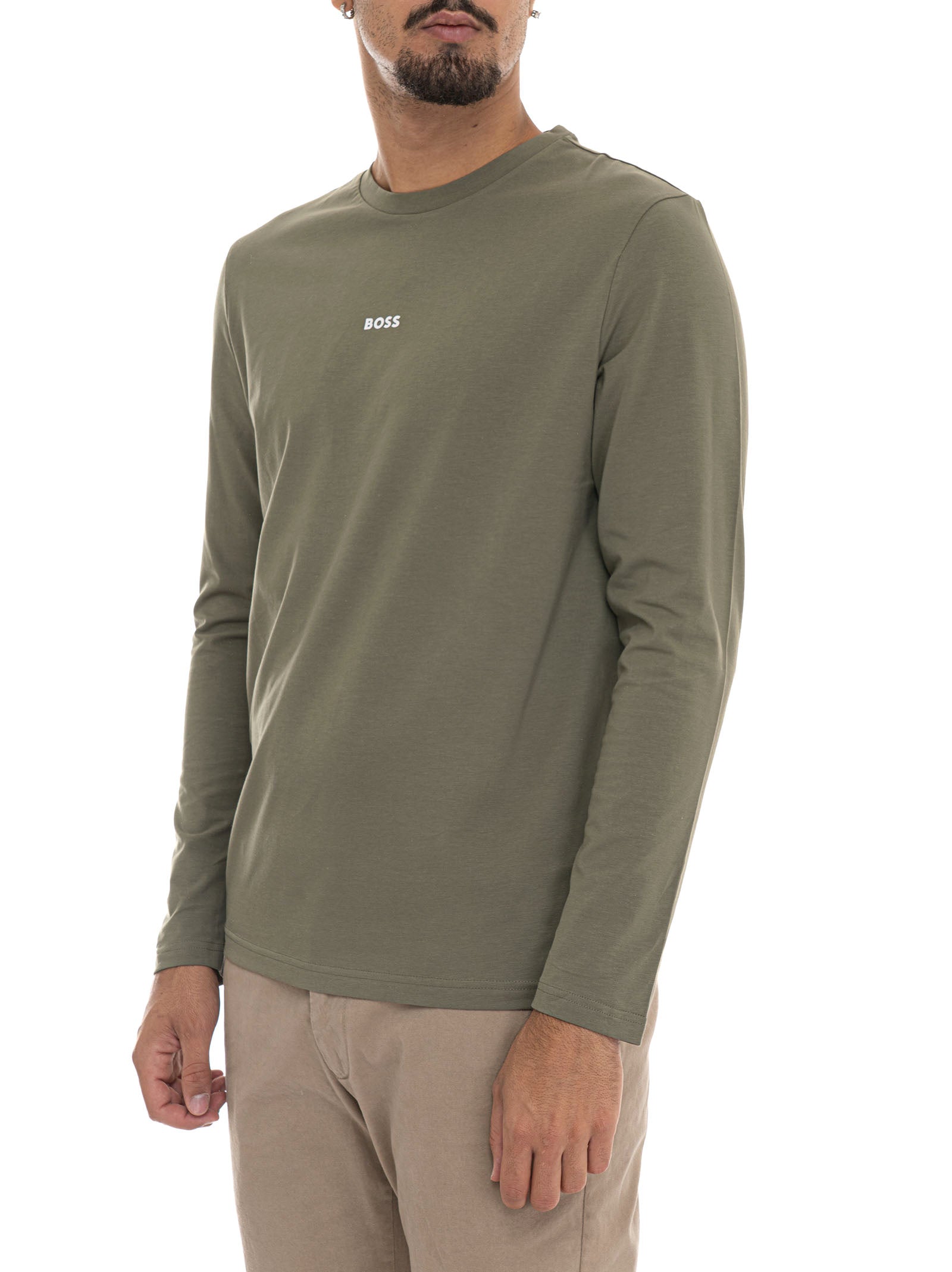 BOSS TCHARK T-shirt, crew neck, long sleeves, small front logo, composition: 96% cotton, 4% elastane, line: BOSS.
