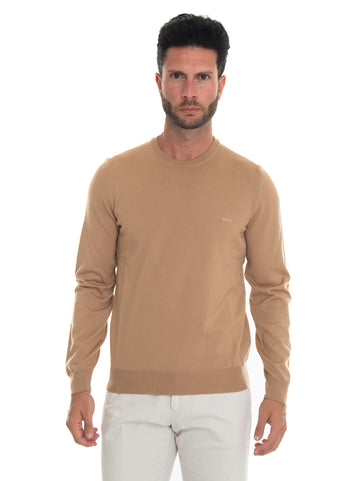 BOSS BOTTO-L crew neck sweater, solid color, logo on the chest, composition: 100% wool, line:...