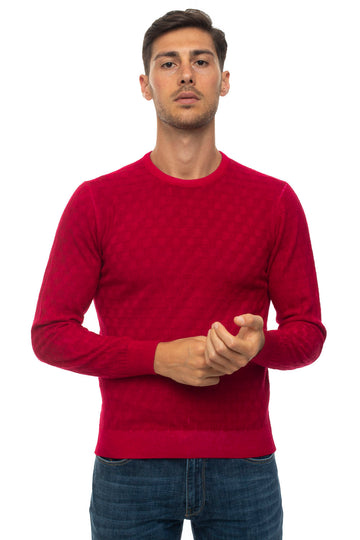 Crewneck pullover, houndstooth pattern, contrasting cuffs and spring, regular fit, composition: 100% wool, line: CANALI.
