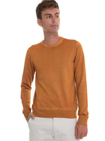 Round neck pullover, stone washed, solid color, made in Italy, fitted fit, composition: 70% wool,...