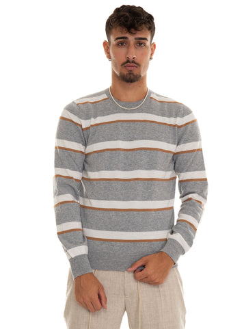 Crew-neck pullover, striped pattern, two-tone, slim fit, composition: 100% cashmere, line: GRAN SASSO.