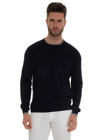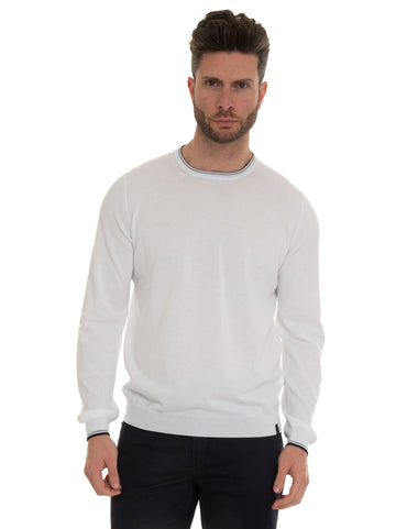 Crewneck pullover, contrasting collar and profiles, front logo, slim fit, composition: 100% cotton, line: FAY.