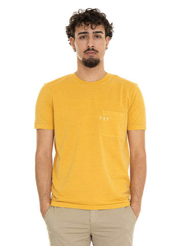 Short-sleeved T-shirt, stone washed, chest pocket, logo on the chest, composition: 100% cotton, line: FAY.