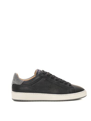Hogan H672 leather sneakers, side logo, contrasting color suede heel, suede inserts, vintage effect, removable...