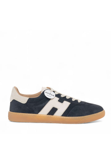 Hogan Cool lace-up leather sneakers, side logo, suede details, contrasting color heel, removable memory foam...
