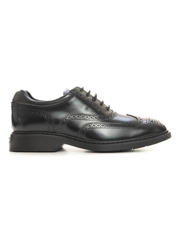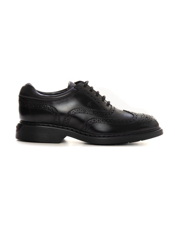 Hogan H672 lace-up leather sneakers, perforated side logo, removable insole, double lace, rubber sole, composition:...