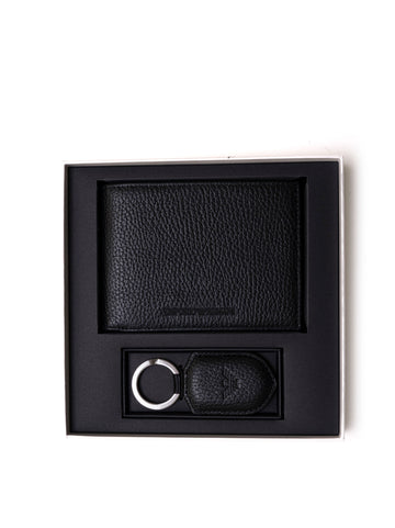Wallet and key ring set, textured leather, small front logo, card holder compartments, banknote compartment,...