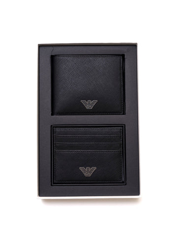 Card holder and key ring set, saffiano leather, metal logo, composition: 100% leather, line: EMPORIO...
