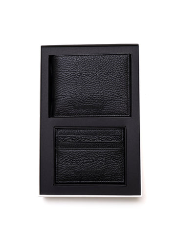 BOSS GB-OUTLINEB-4CC&CARD wallet and card holder set, hammered leather, chrome-plated steel logo, coin compartment, banknote...