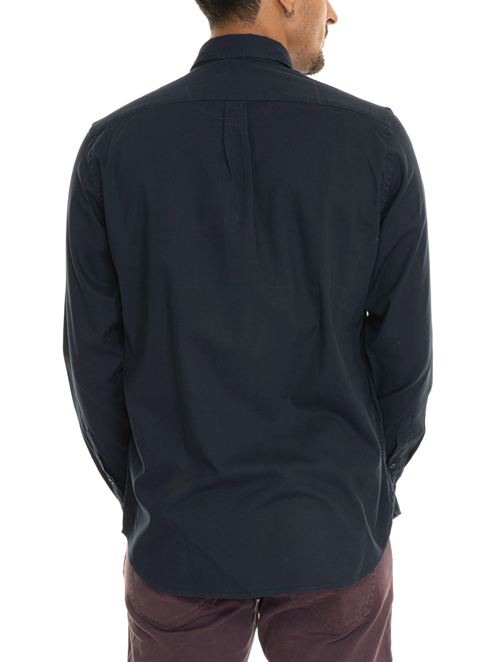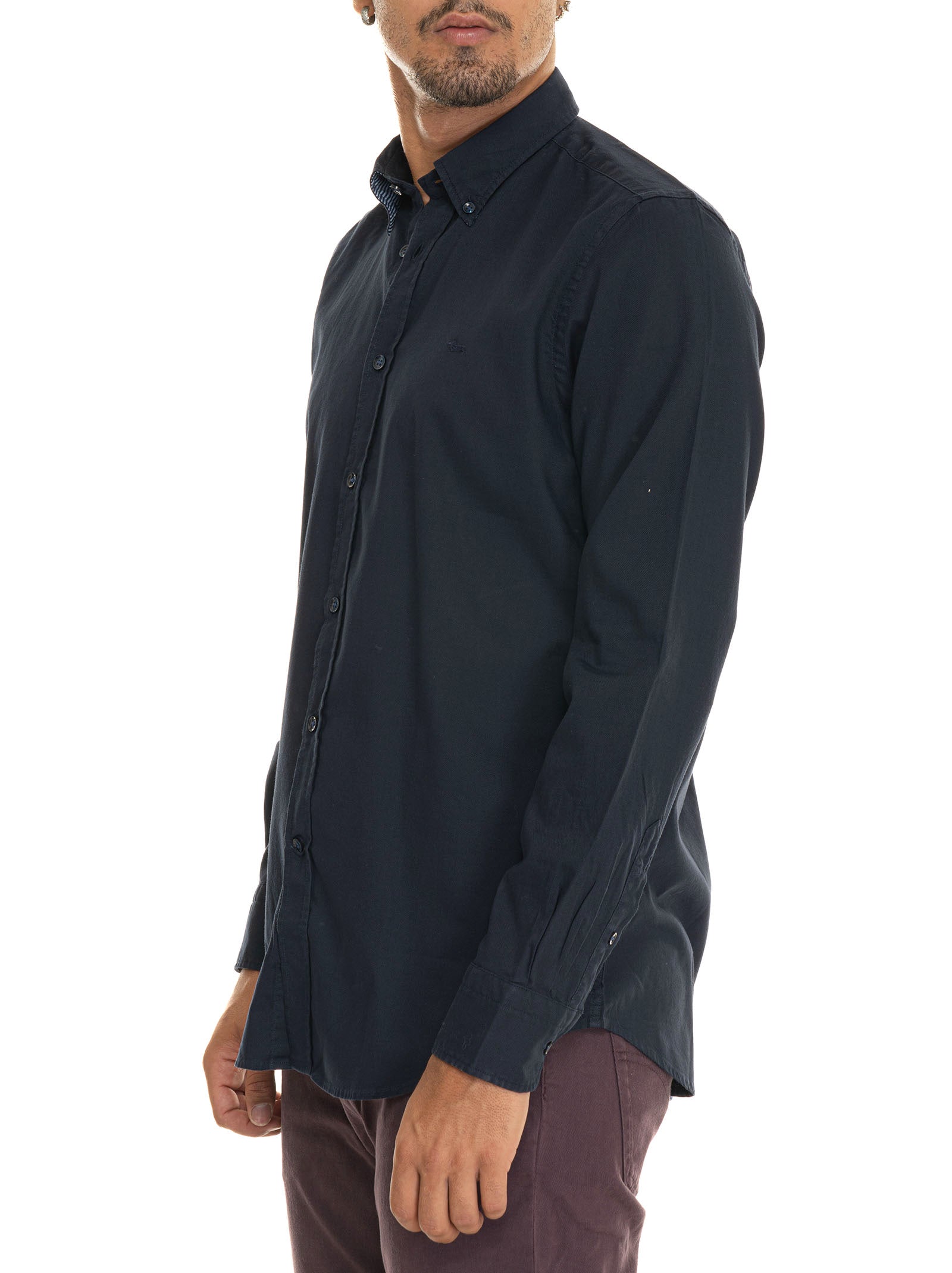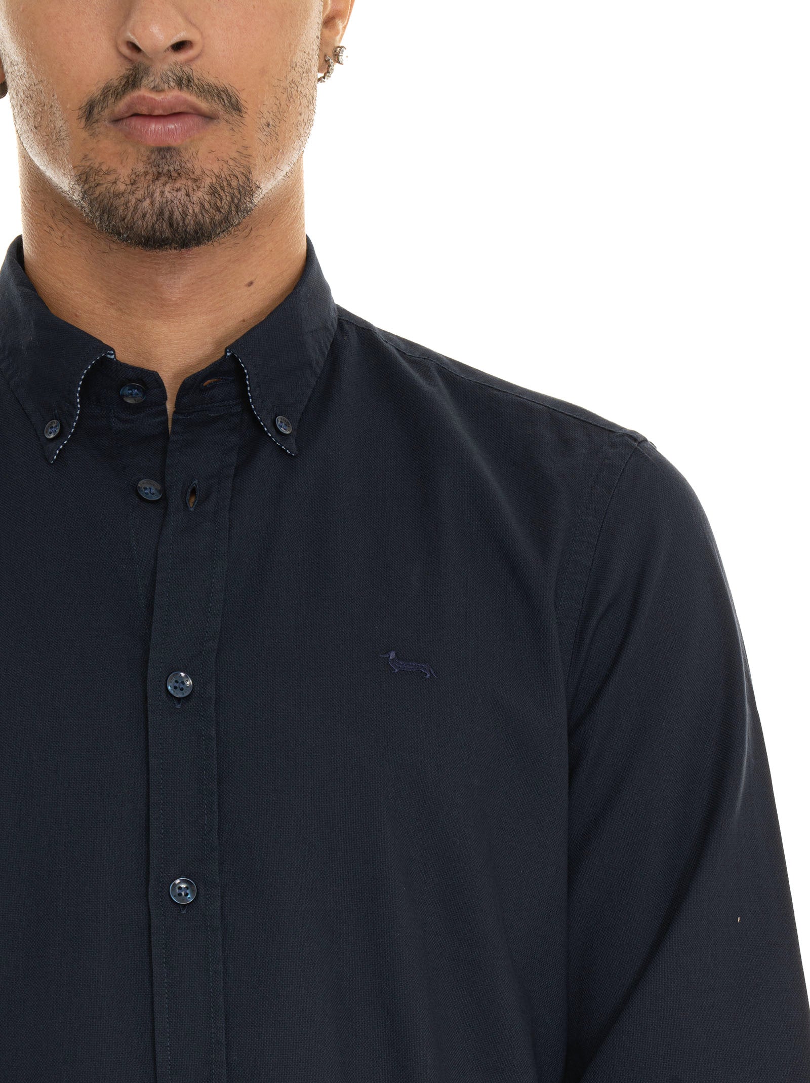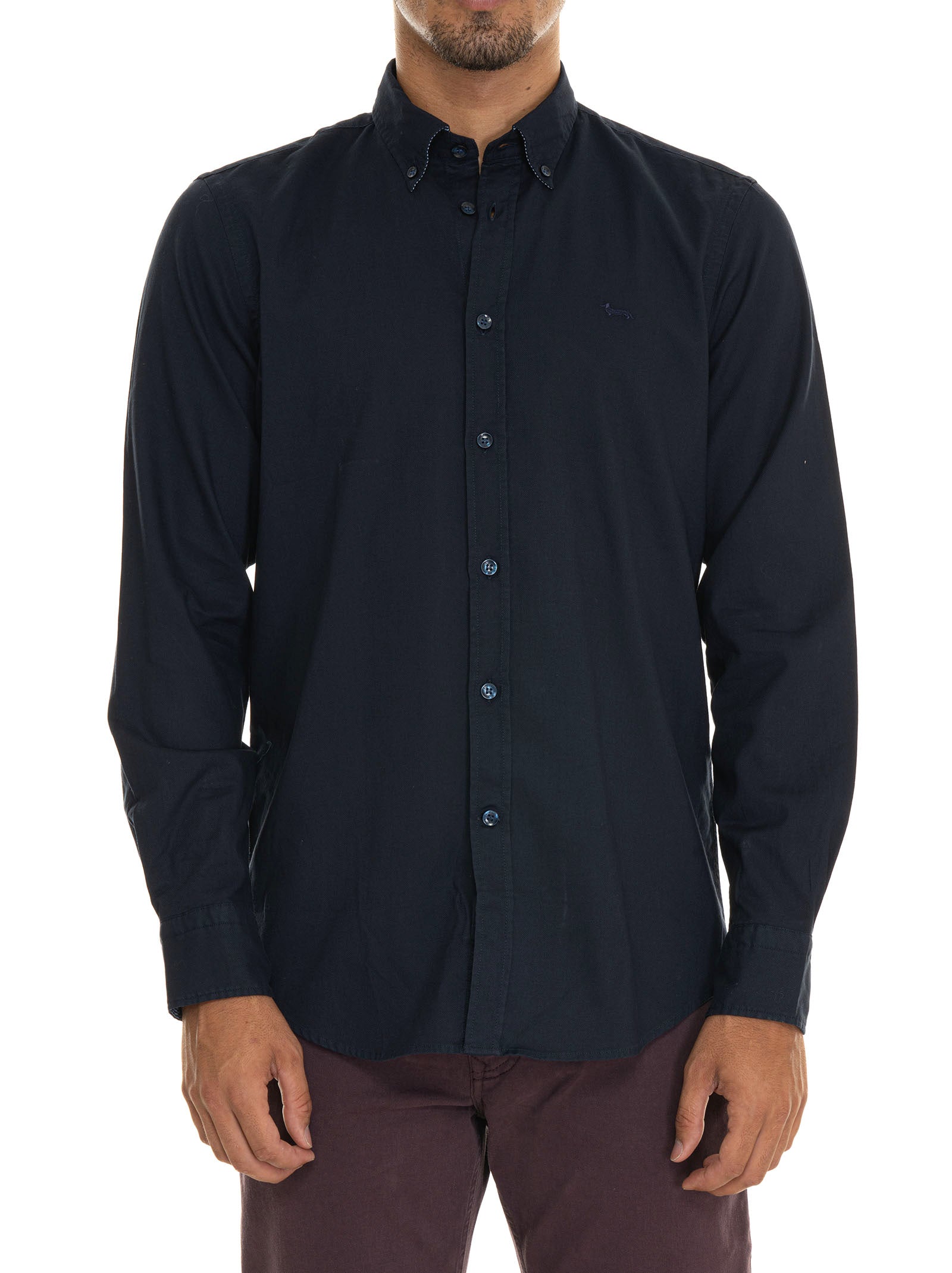 Casual shirt, button-down collar, logo on the chest, patterned undercollar, textured fabric, composition: 100% cotton, line: HARMONT & BLAINE.