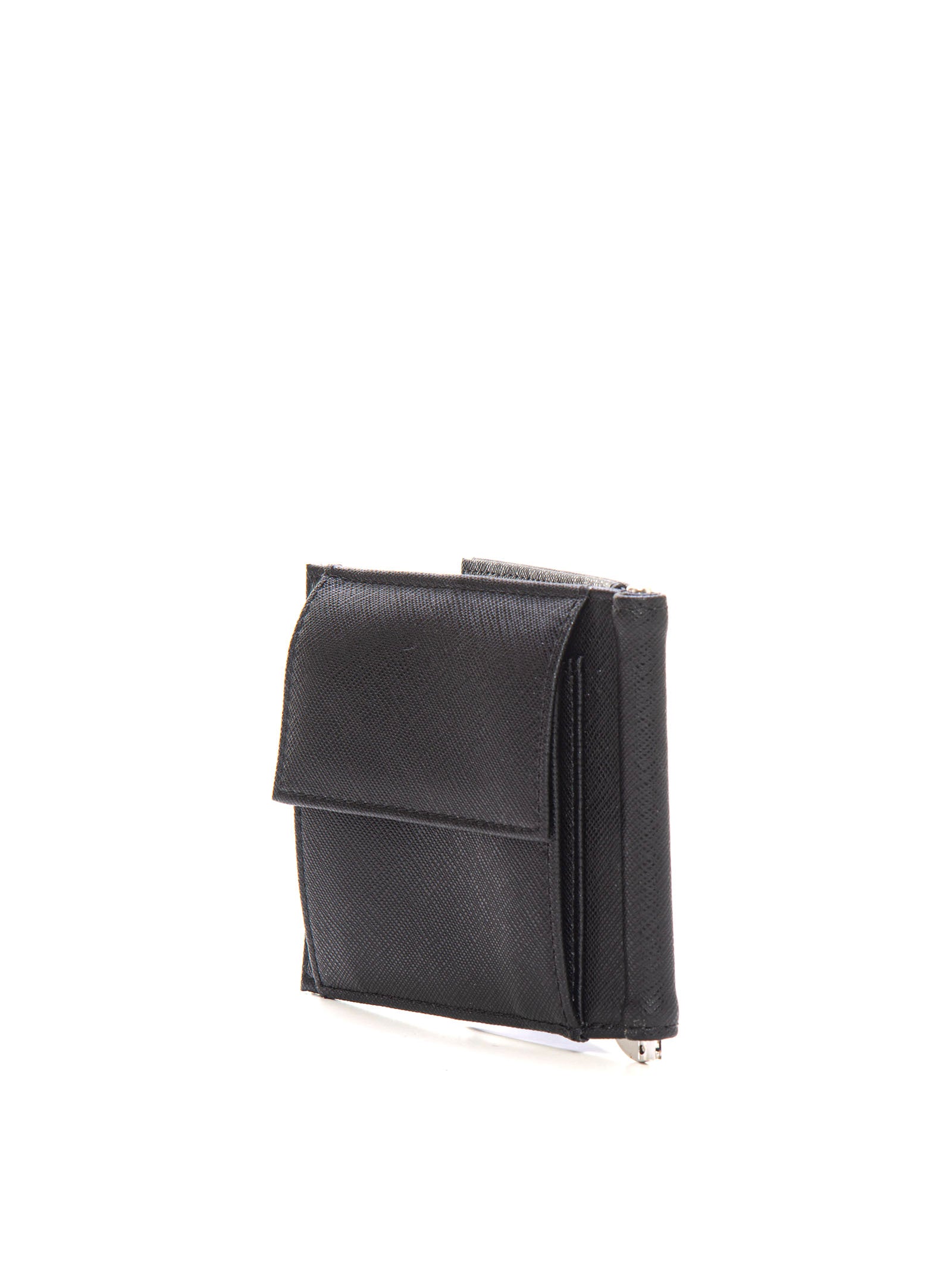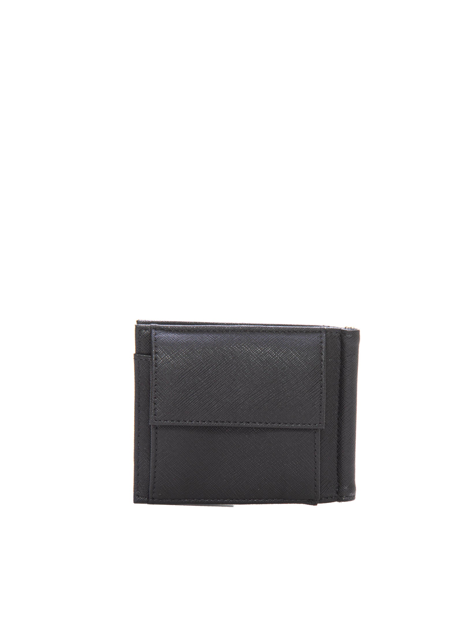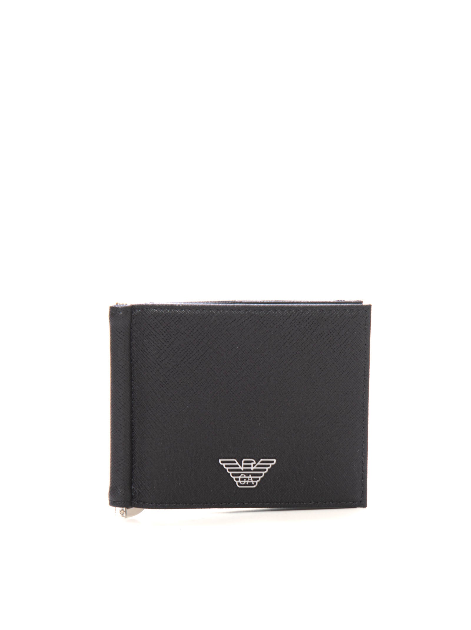 Wallet with money clip, metal logo, card slots, coin compartment, saffiano leather, composition: 53% polyamide, 47% polyester, line: EMPORIO ARMANI.