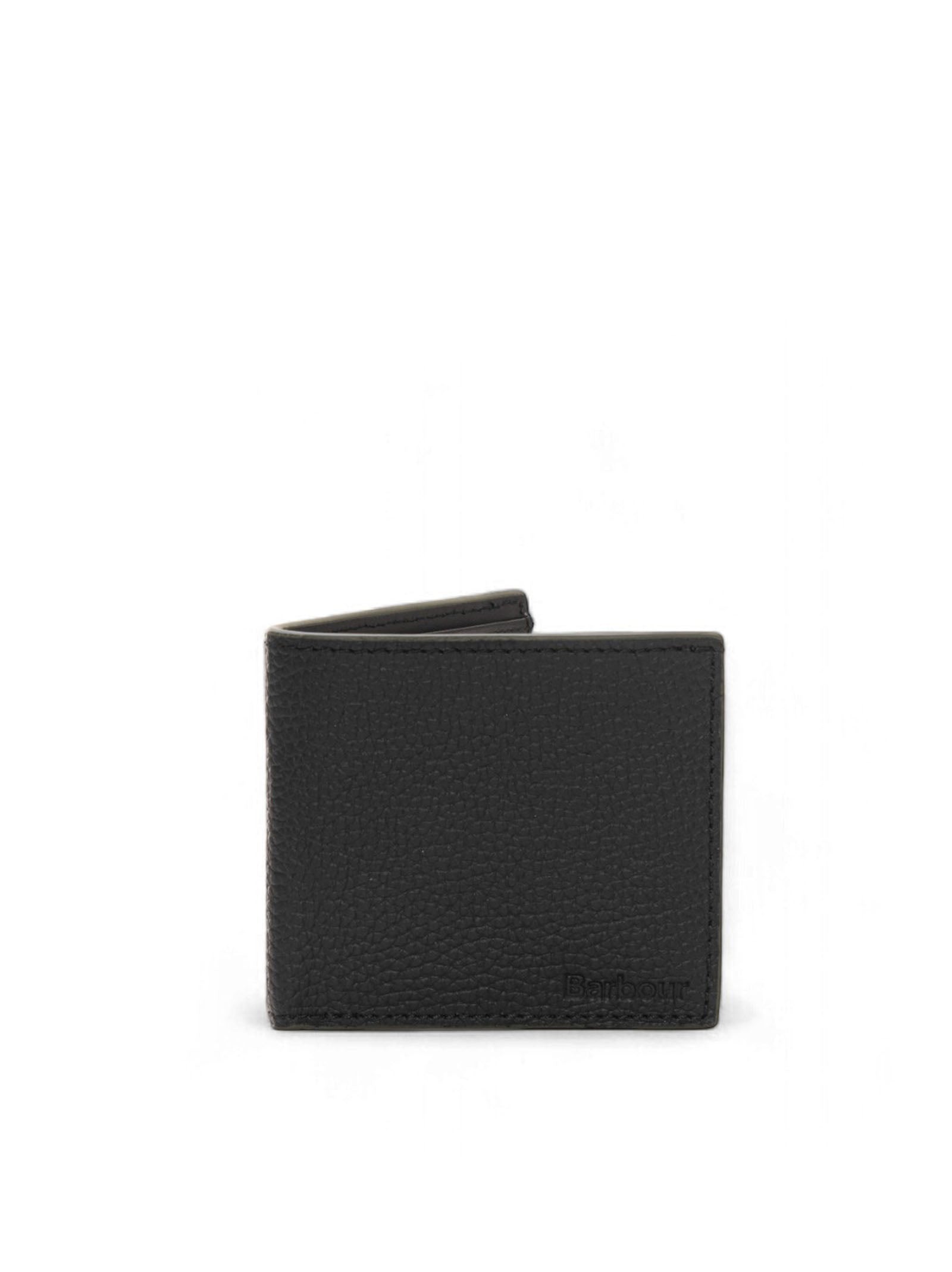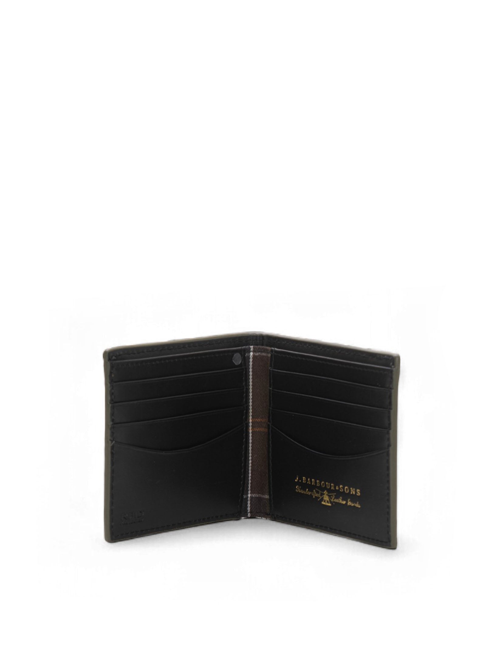 Leather wallet, hammered leather, front logo, card slots, bill compartment, tartan patterned profiles, composition: 100% leather, line: BARBOUR.