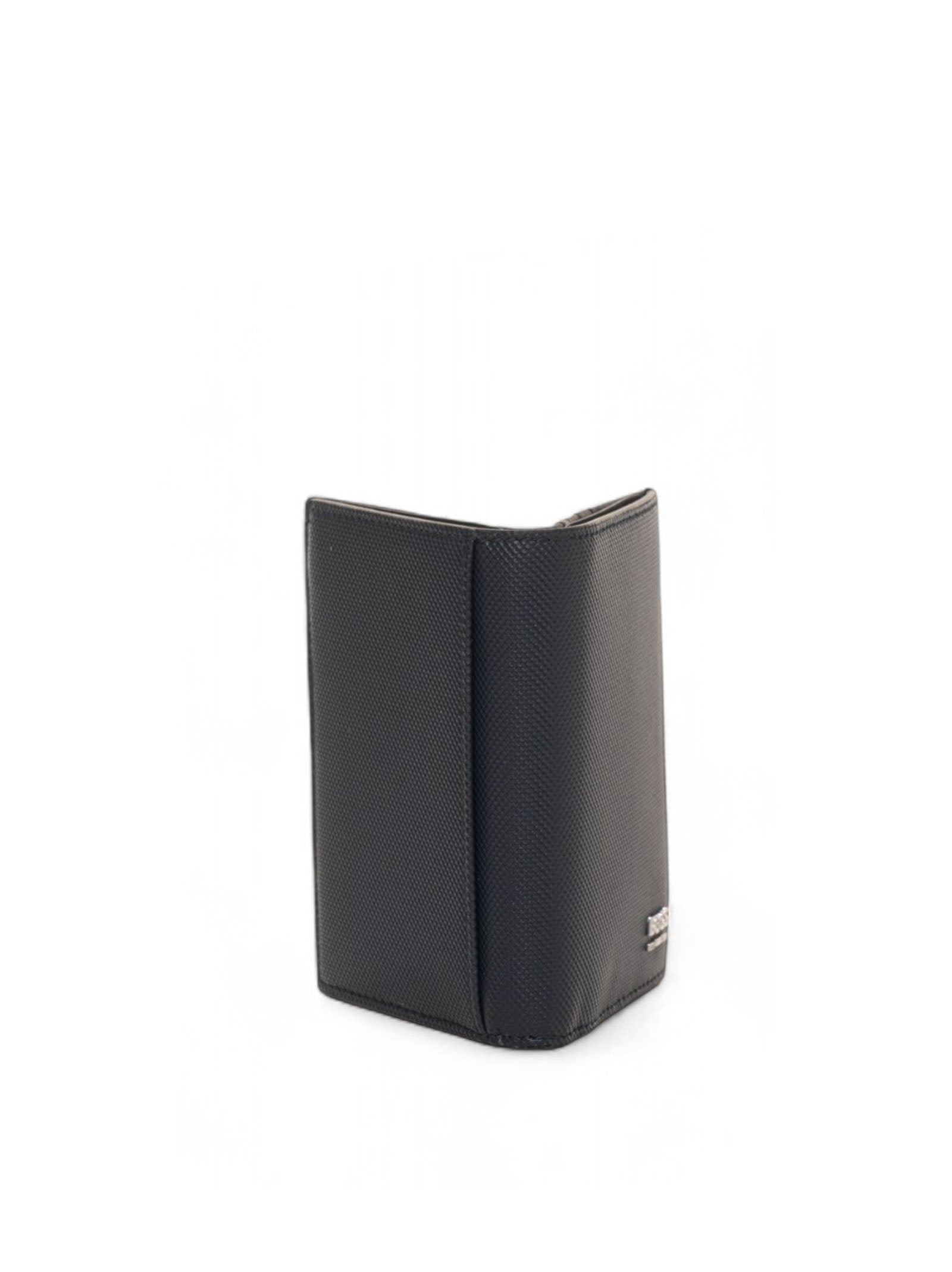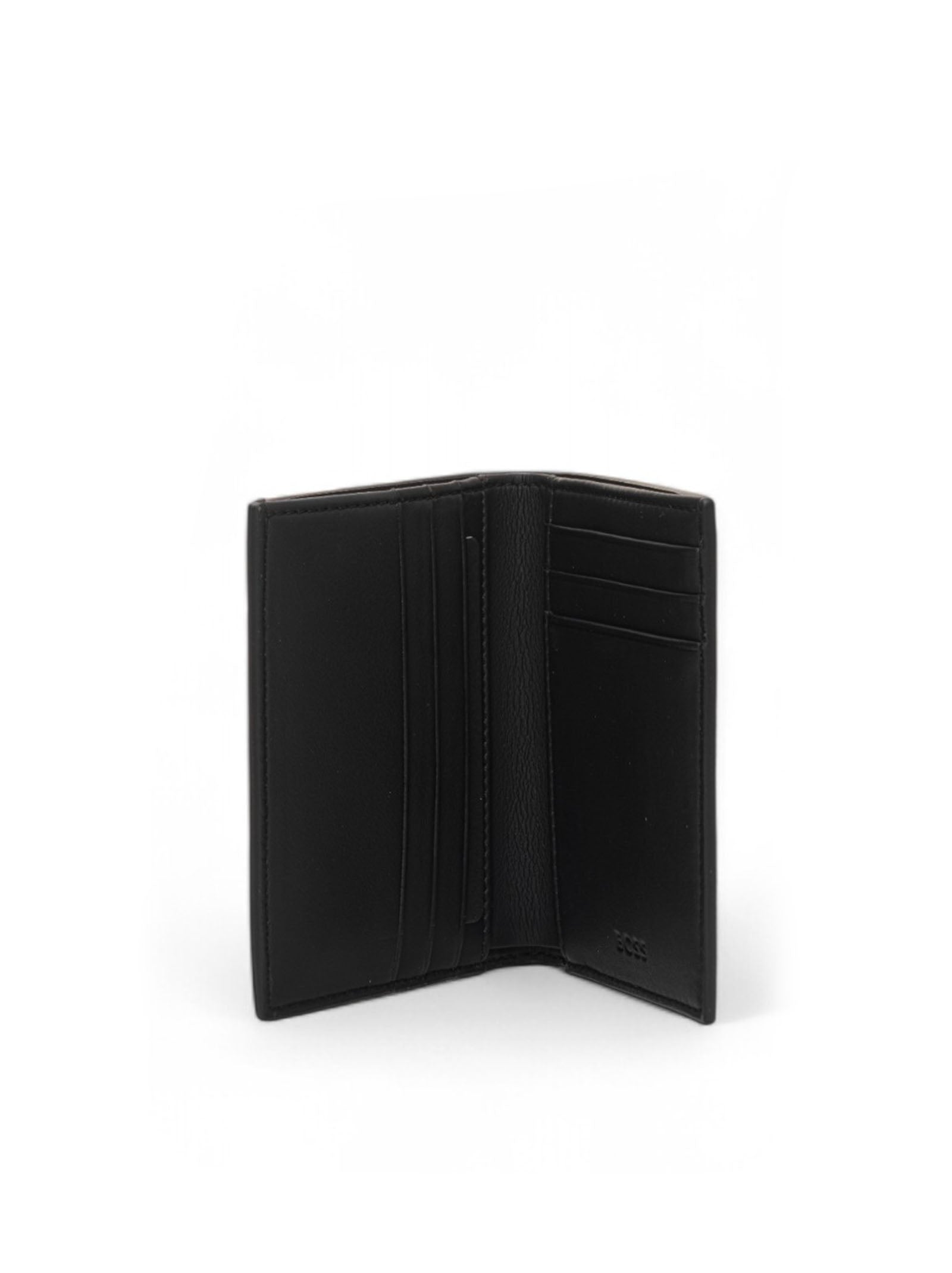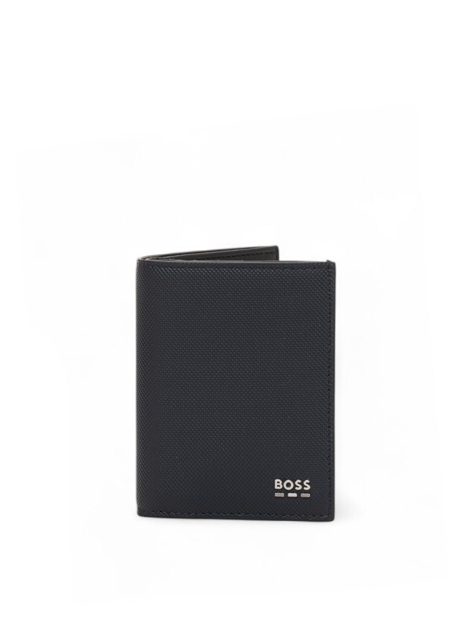 BOSS JINKO-BIFOLD vertical wallet, textured material, metal logo, card slots, note compartment, composition: 62% recycled polyurethane, 8% polyurethane, 30% polyester, line: BOSS.