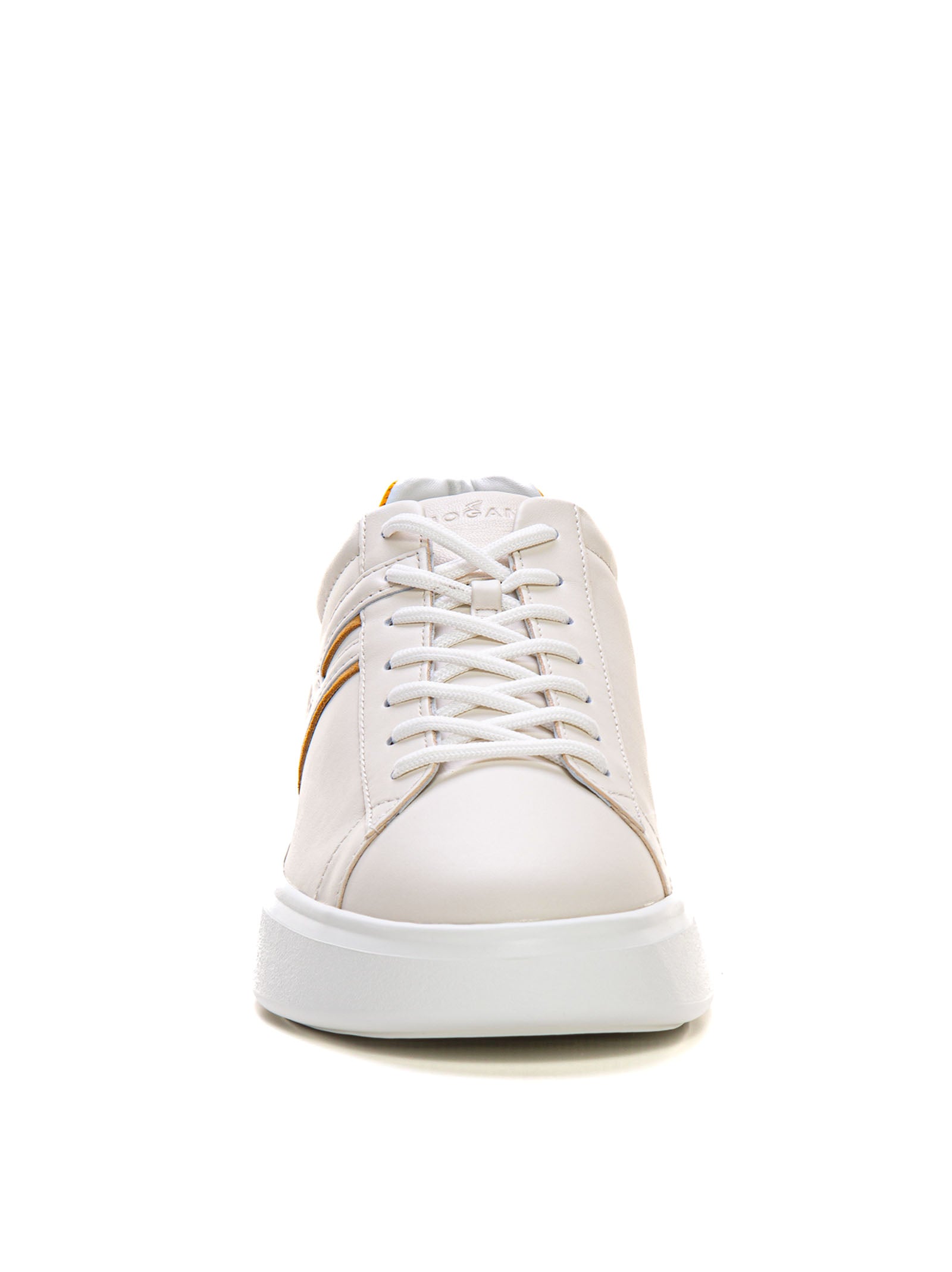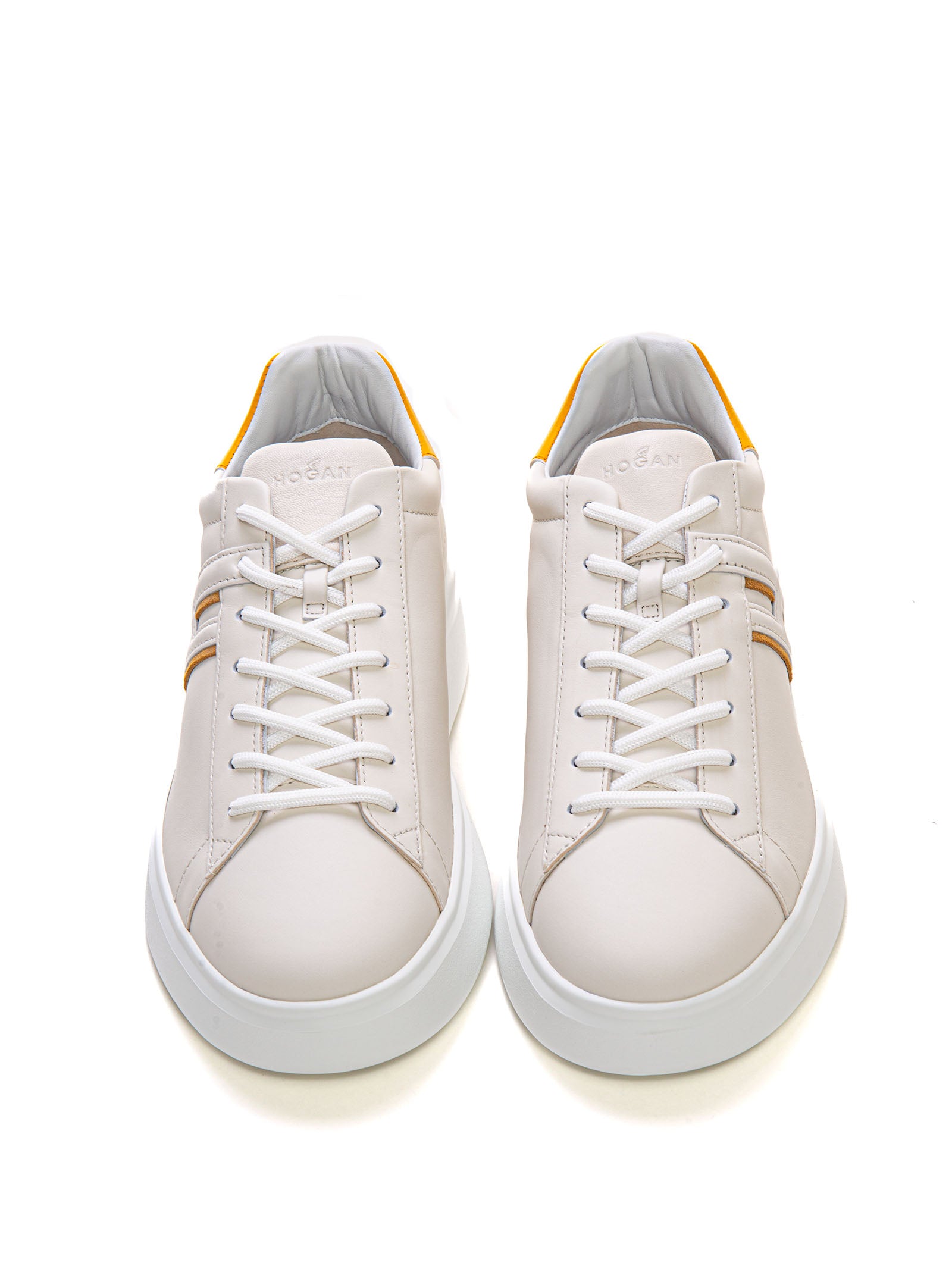 Hogan H580 high sneakers, side logo, contrasting color heel, removable memory foam technology insole, non-slip rubber sole, double laces, composition: leather, line: HOGAN.