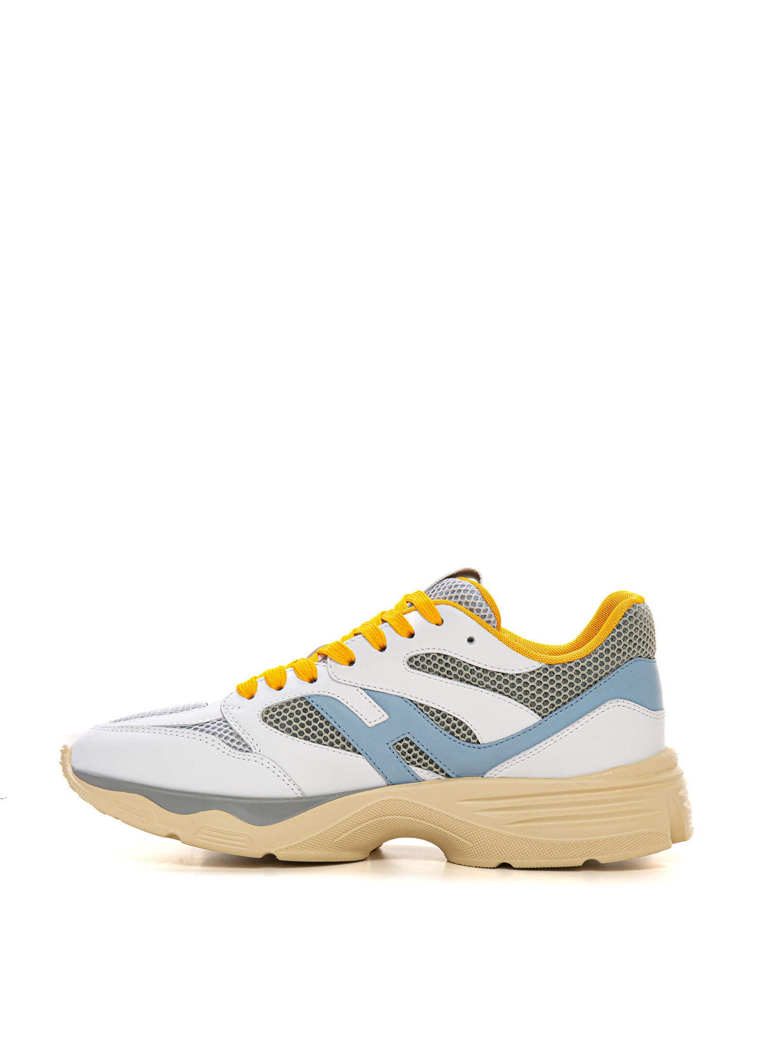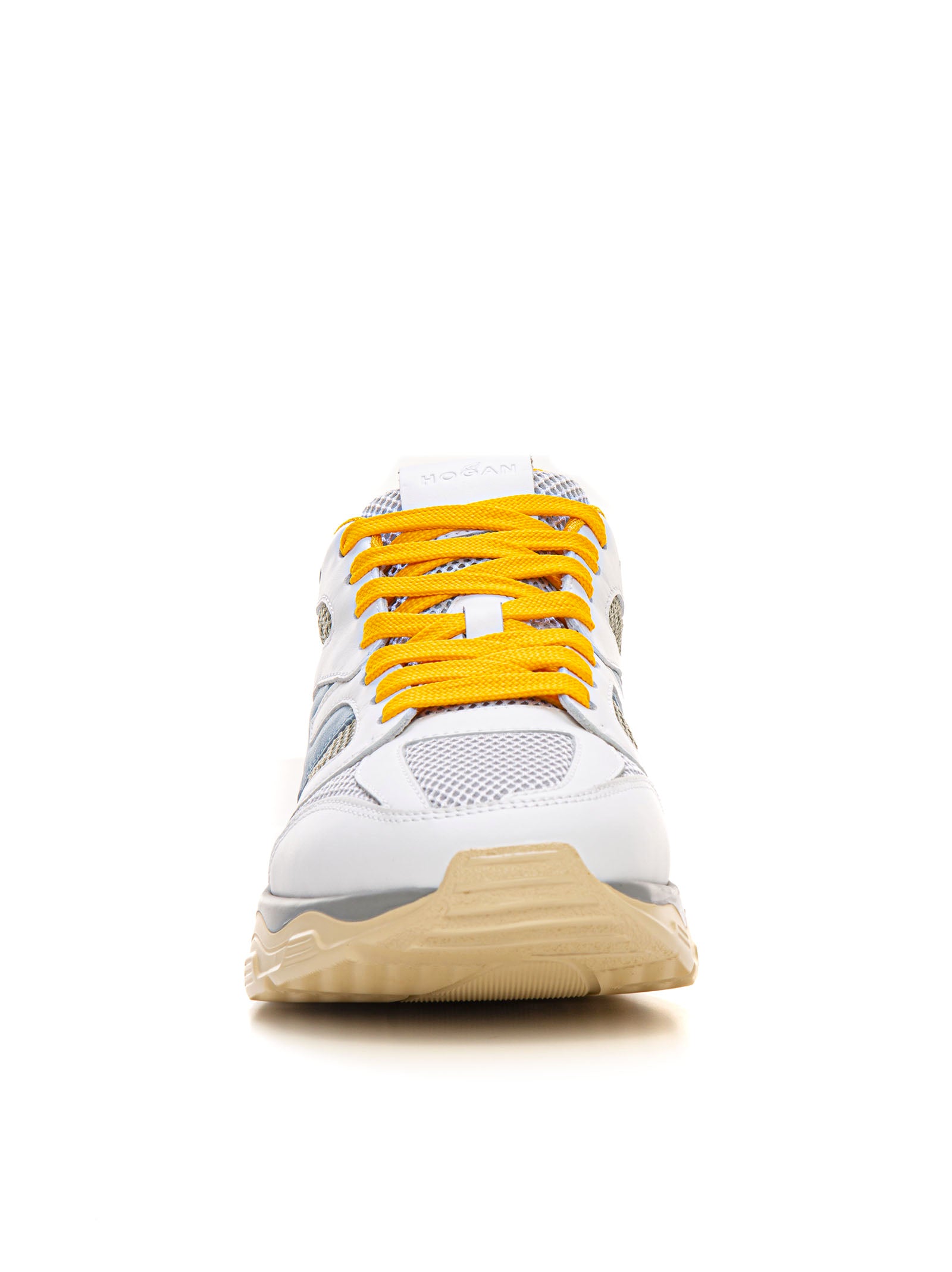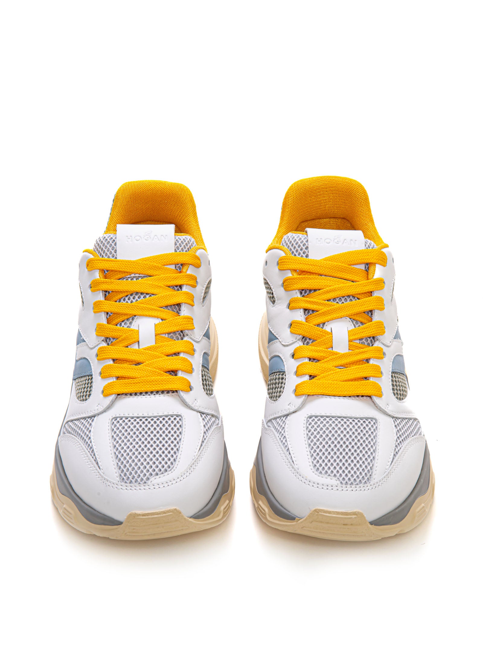 Hogan H665 high-top sneakers, bi-material, side logo, contrasting inserts, contrasting rubber sole, removable memory foam technology insole, double laces, composition: leather, line: HOGAN.
